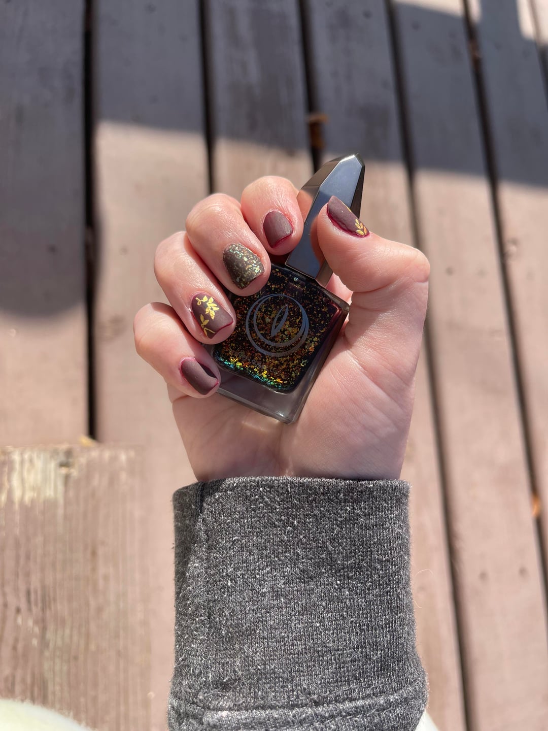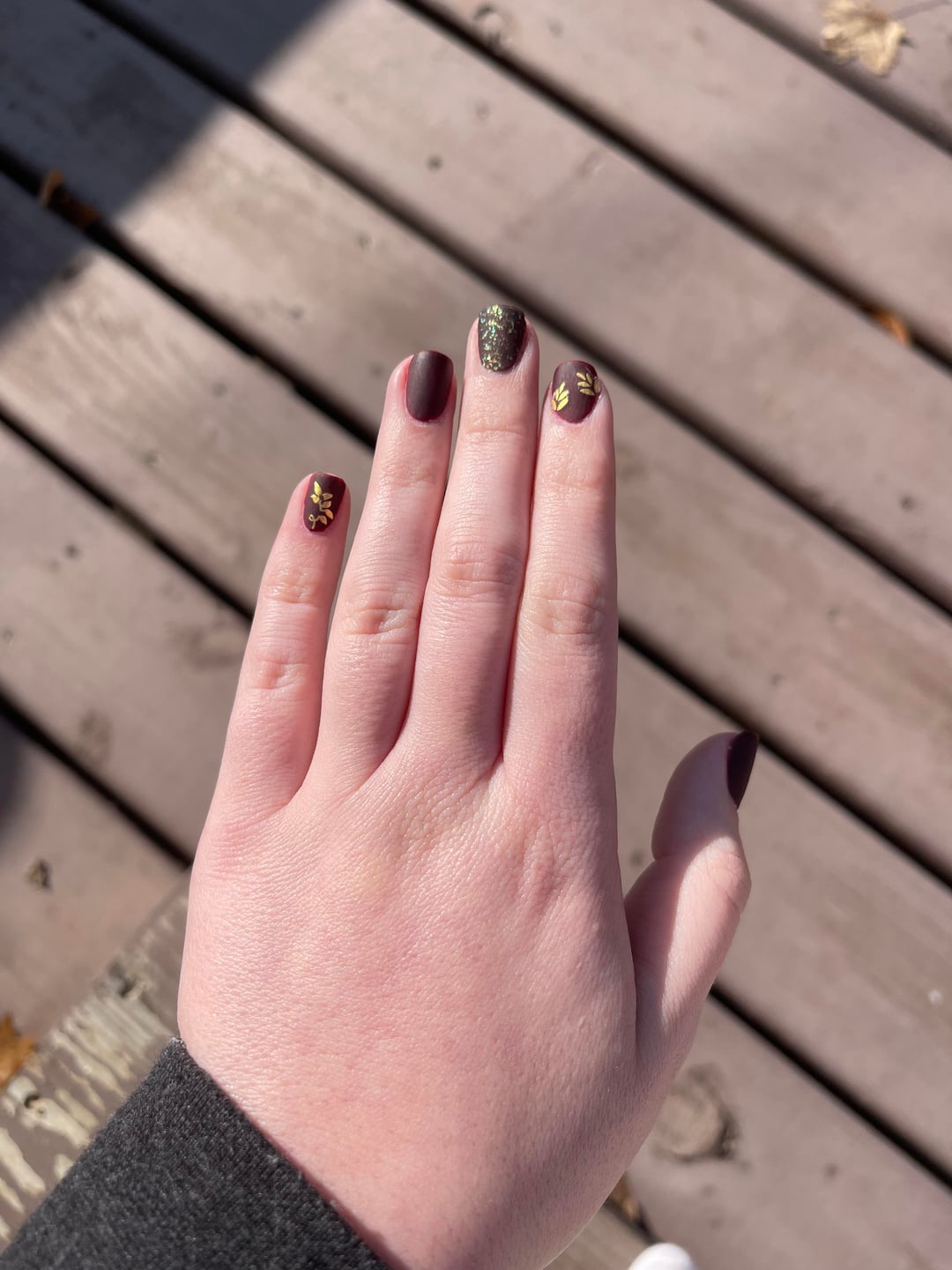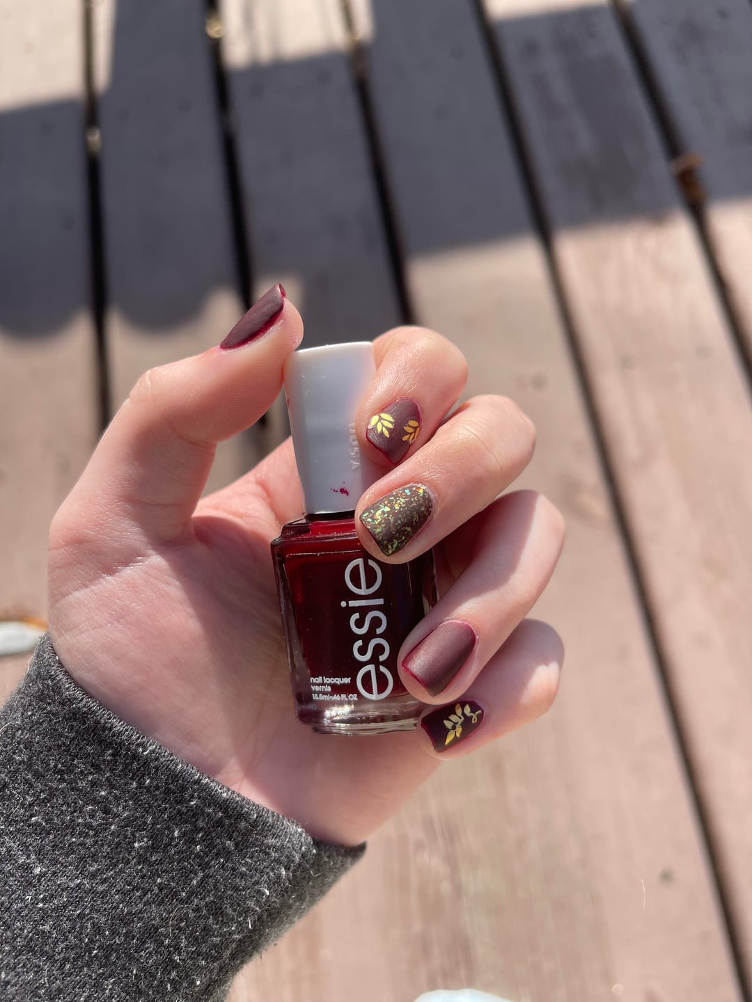 I really love the matte burgundy with the gold leaves, that’s so pretty 😍