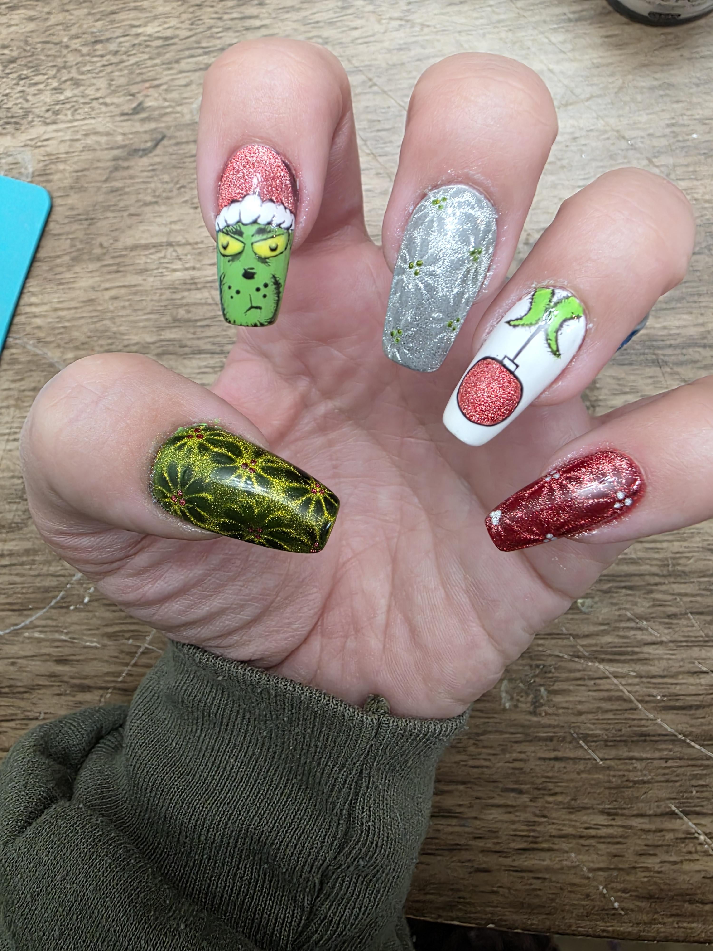 My other hand has Thanksgiving themed nails so I wanted to do the Grinch! All gel polishes used are by Beetles, including the magnetic polishes. by MrsScarred