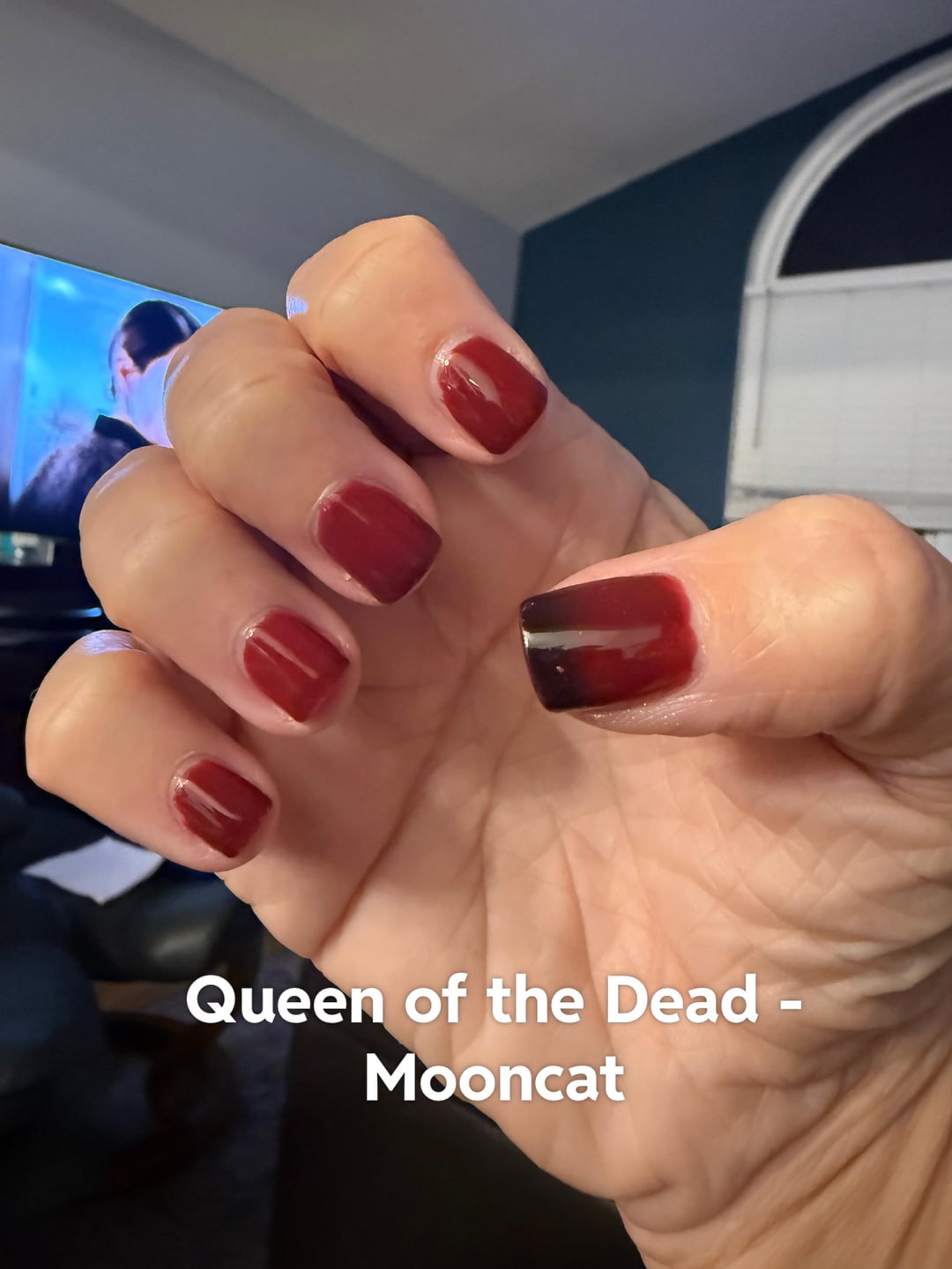 I polished my nails today with Mooncat’s Queen of the Dead and noticed how nice my hands looked.