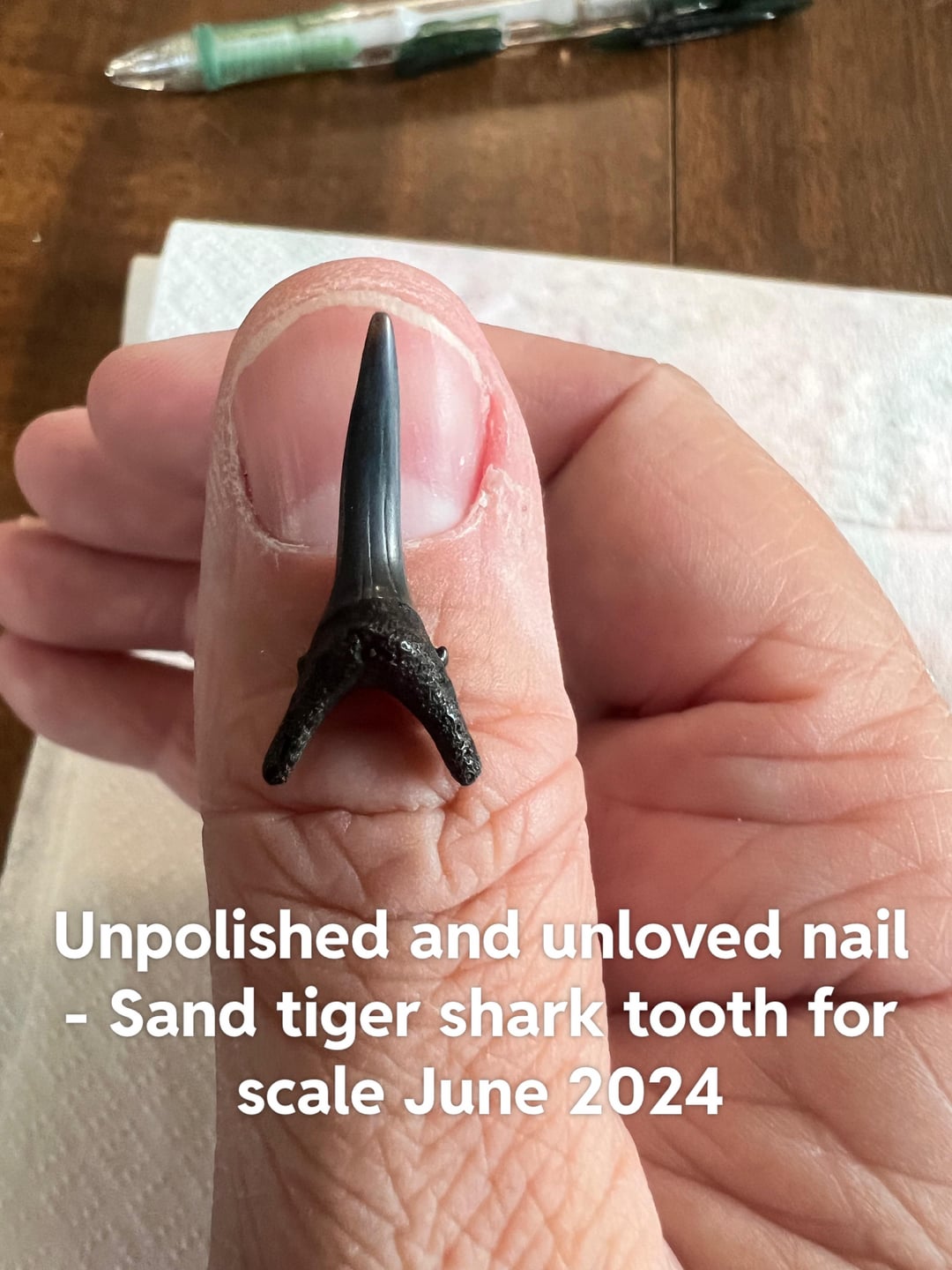 Back in April, on a whim, I spent way too much money ordering nail polish from Mooncat with my 19 year old daughter. We started doing each other’s nails. I found a picture of my first manicure in Mooncat’s Pangea and included it. I also included some pictures I found from shark tooth hunting the summer before to show how my nails and cuticles used to look. (I was using my fingers for scale in photos).
