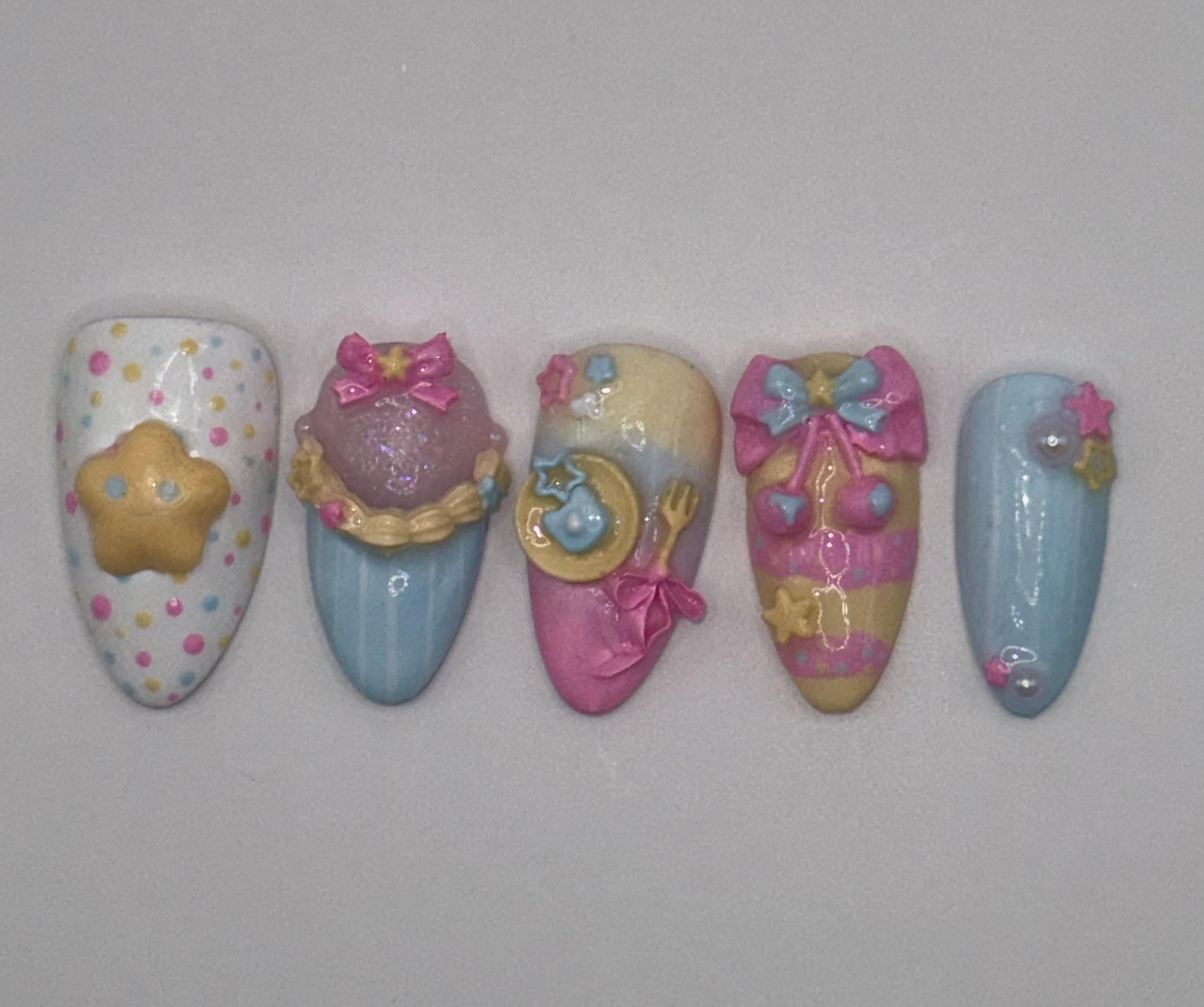 Is this set cute so far? Debating on finishing it, kawaii star dessert press on nails by hecate_faerie