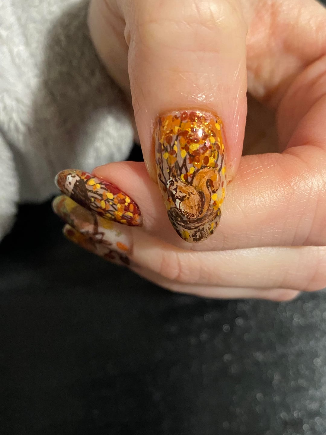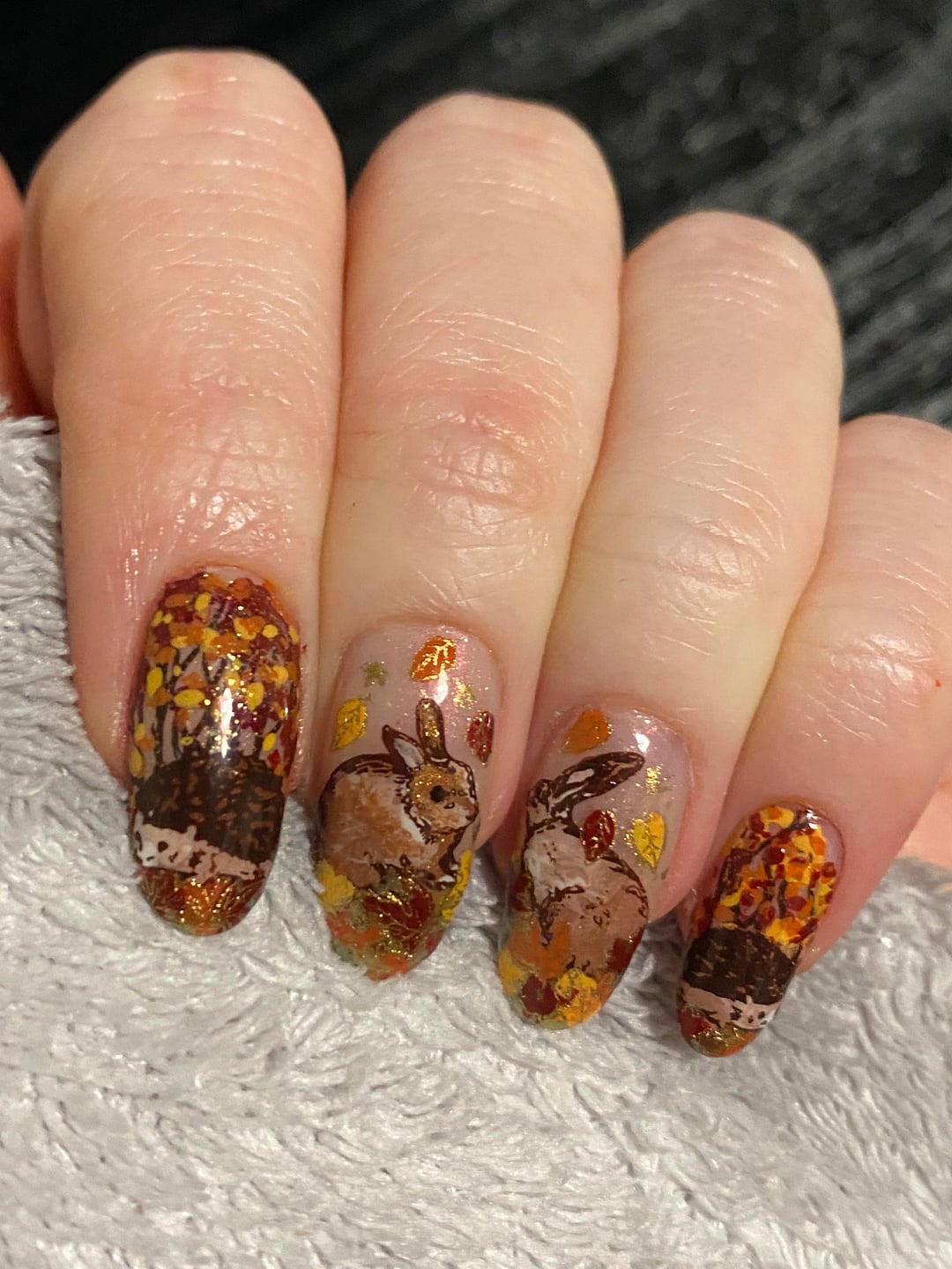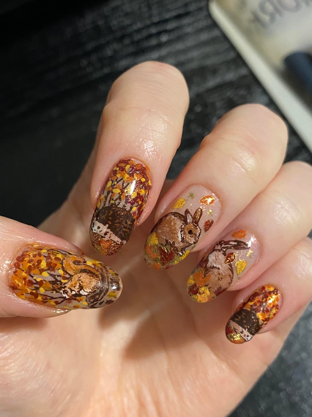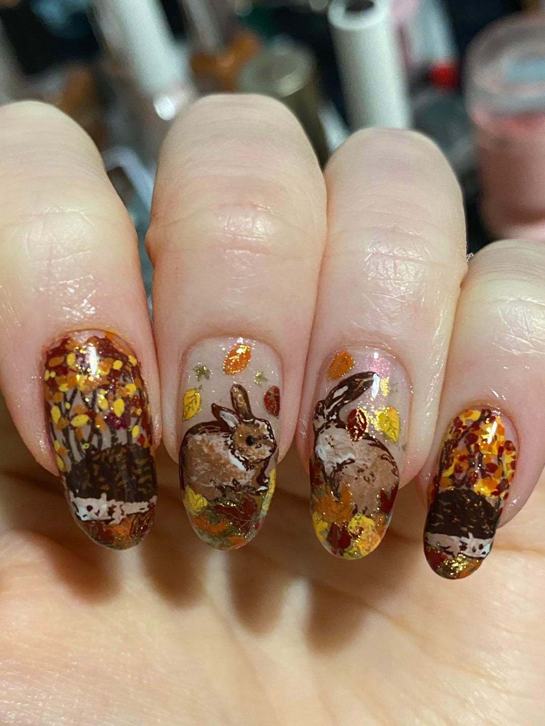 This is my favourite time of year, but I'm ill and stuck indoors. Usually, I'd go on nice long walks with my partner and we'd sit halfway through and enjoy a hot cup of tea and some biscuits. I'm missing the outdoors, so I decided to do some wildlife nails to cheer myself up.