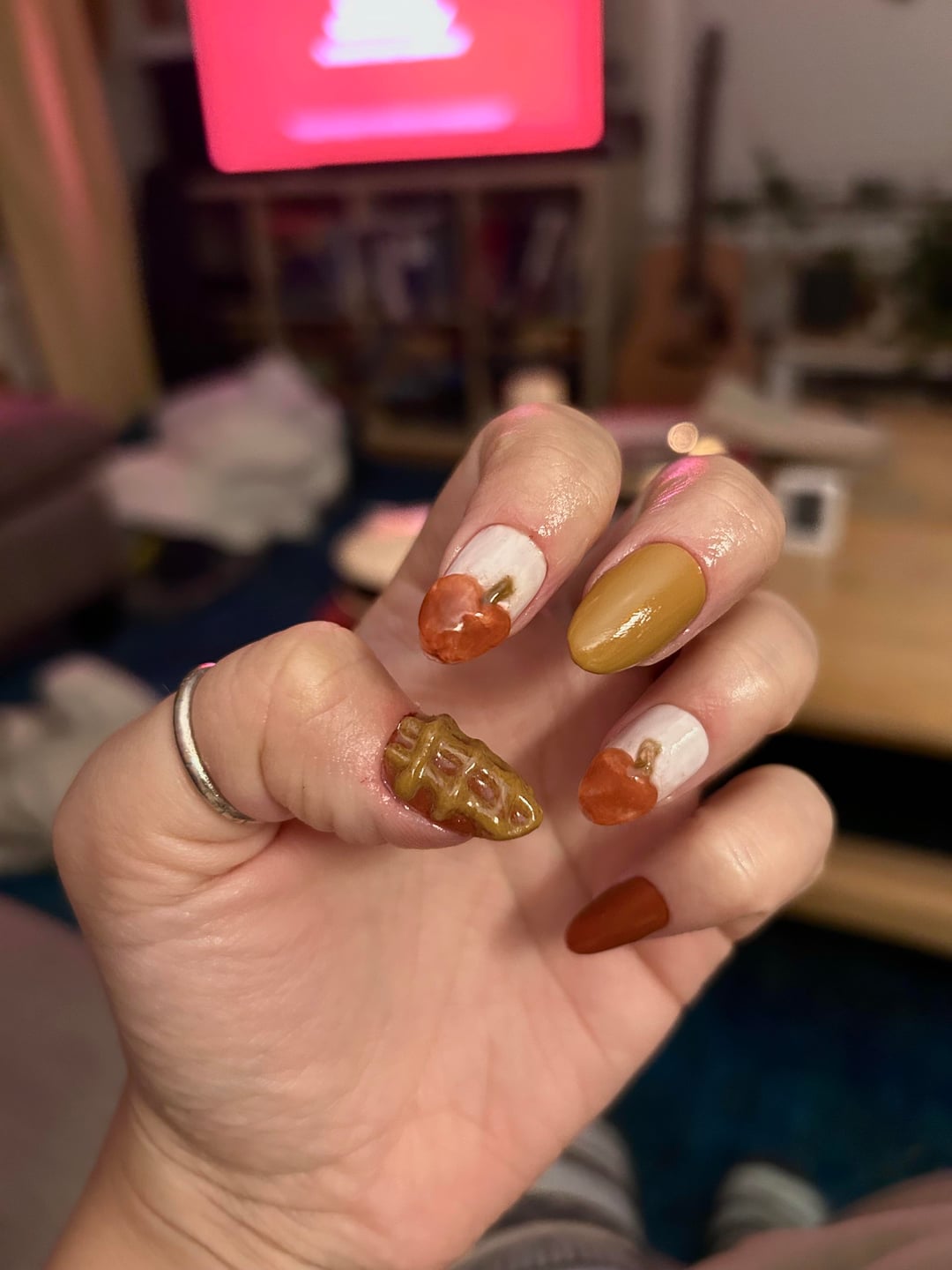 November 24, 2025What do you think of these freehand nails (valenails)? The second photo was inspiration.
