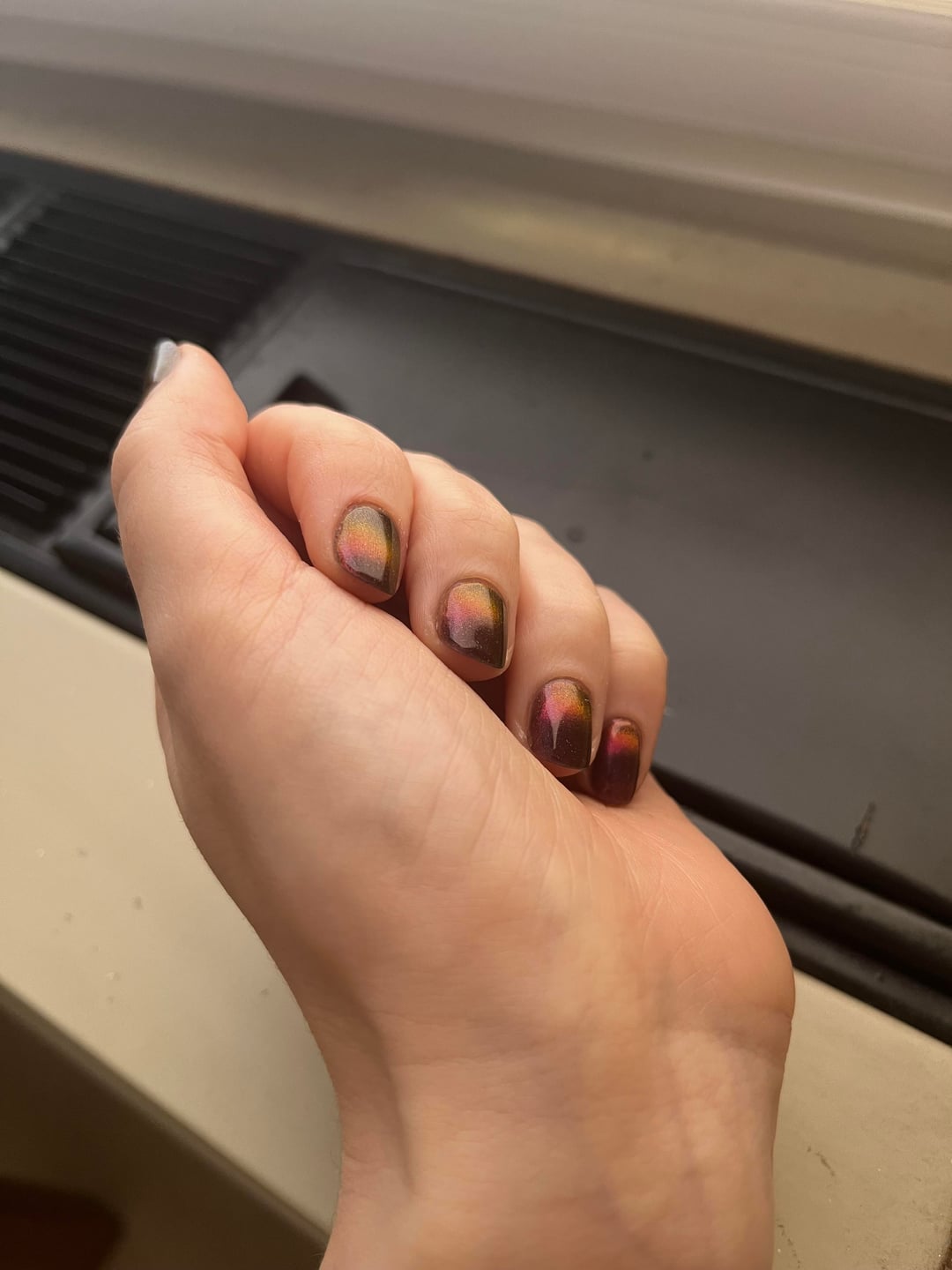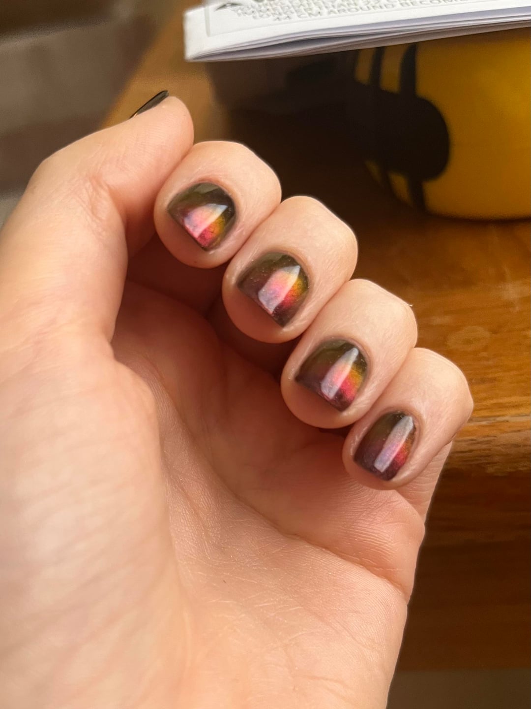 Also I feel like the Hard as Nails and Speed Setter top coat combo made the polish look a bit juicier and shinier? Like most multichromes, it looks a bit dull on its own and definitely needs a thick top coat.