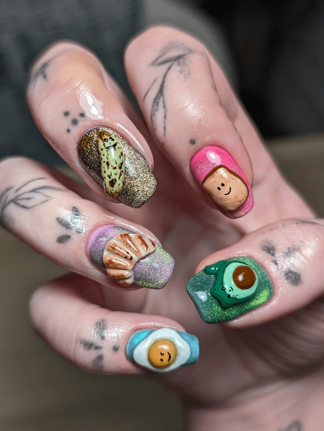 Created by me – Nikki Nailed it 💜 I'm a nail artist in Manchester, UK… and it's lovely to meet you 🥰 These were my little self-care project today, and I'm absolutely in love with how they turned out! The little croissant is my fav 🥐☺️ by Holliday22