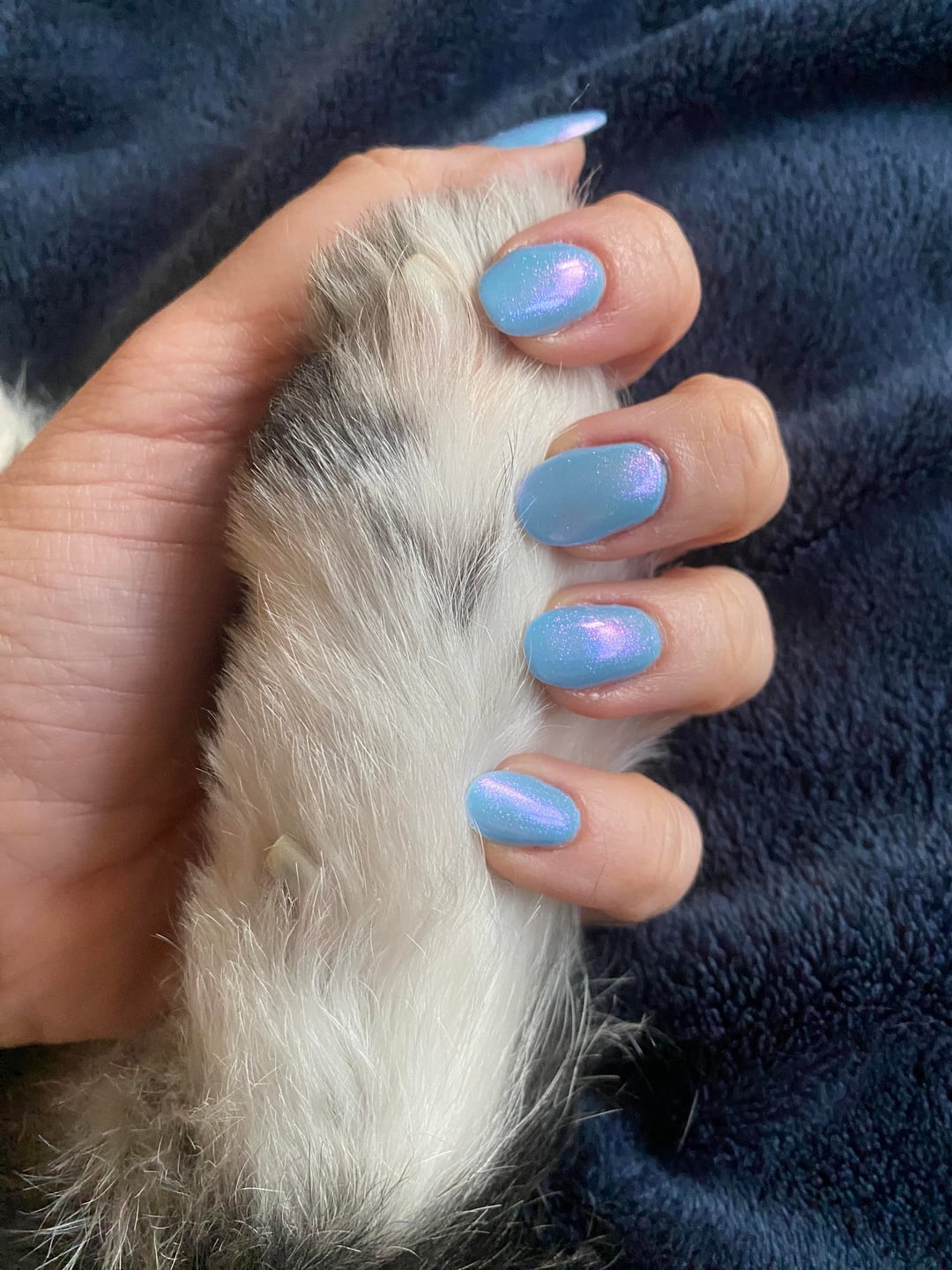 Base coat: Sally Hansen miracle cute strengthened Pawlish: 2x Sally Hansen insta-dri ‘Up in the Clouds’ 1x Essie special effects ‘aura’ Top coat: Sally Hansen insta-dri top coat by pairofscissors212