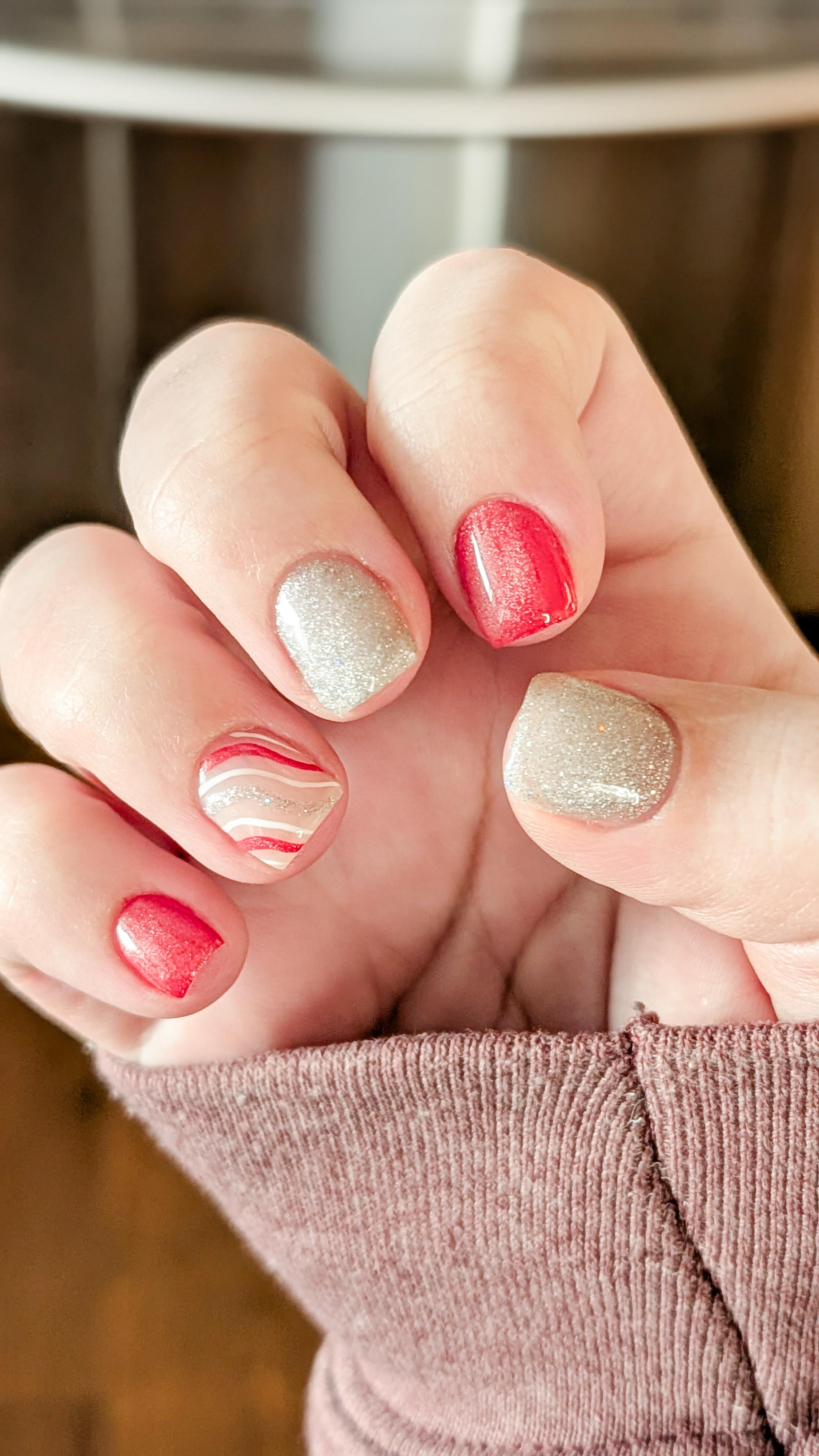 I can't stop looking at my nails. I love them!!! ❤️ 🩶 🎄 I'm going to have to get glitter every time now!