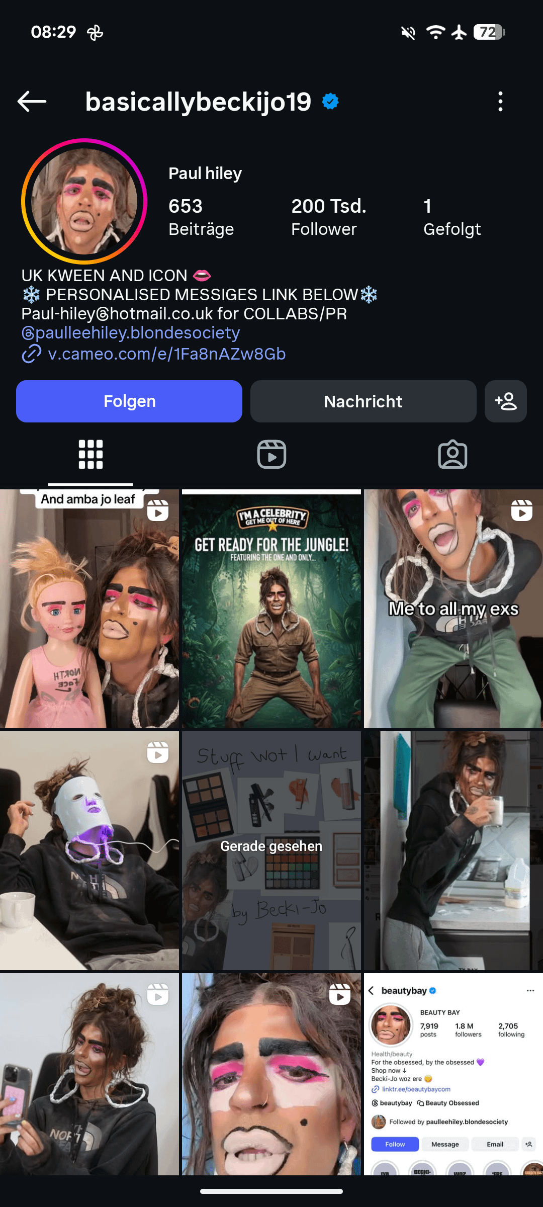Beauty Bay is doing a "takeover" by basicallybeckijo19 aka some dude doing an parody of a stereotypical lower class British woman. I've never heard of him before the takeover, but I stuck around for a bit to see if he actually brings something funny to the table (regardless of the unfunny presentation). Well surprise, he doesn't. Several people have pointed out that this is