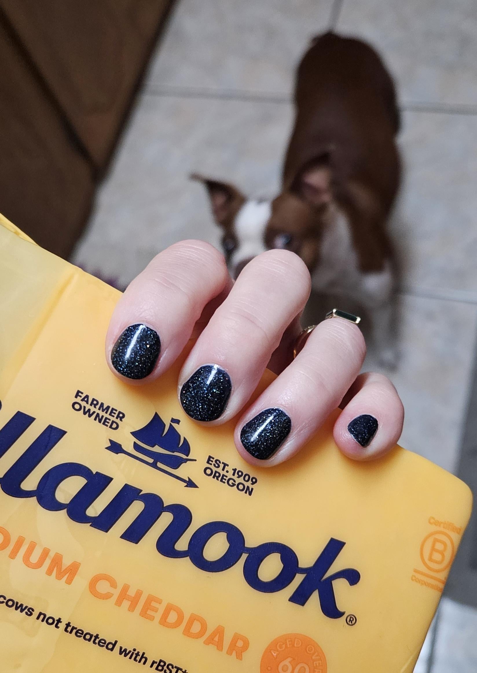 Orly bonder base, 2 coats ILNP You up?, Sally Hansen QDTC (red bottle). Yes, Bowie got got a treat! by honeyheyhey