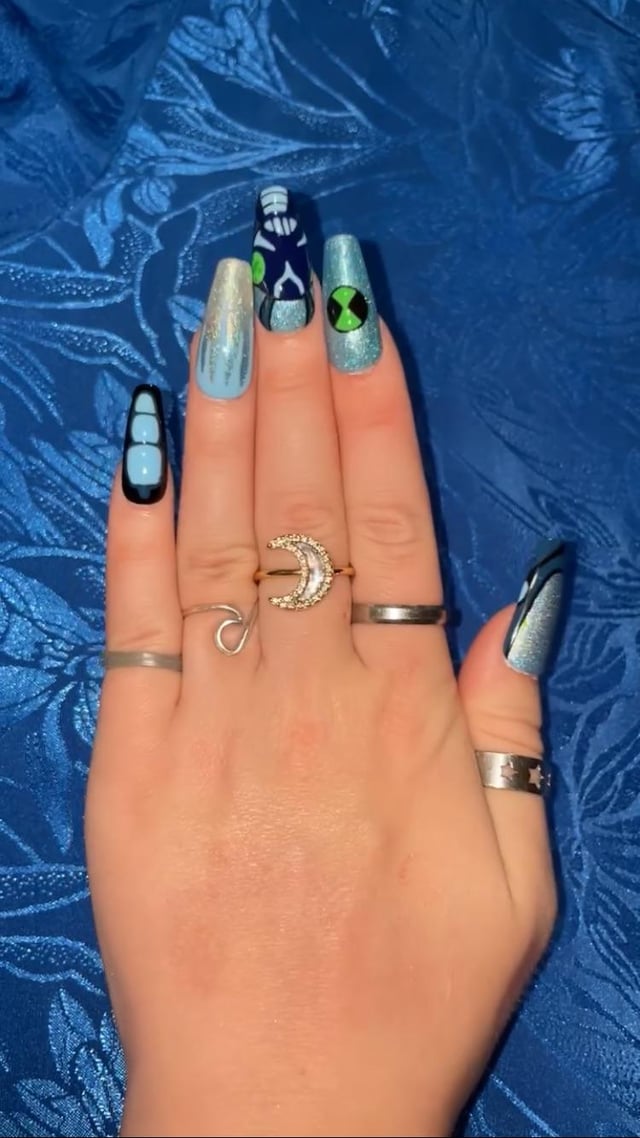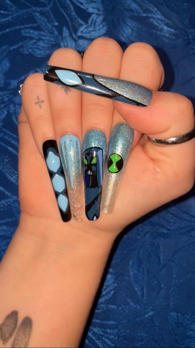 I love Ben 10, so my sister who’s a nail artist made me nails of my favorite alien, Big Chill. She’s self taught, so it’s amazing seeing how much progress she’s made over the years! by amaangel