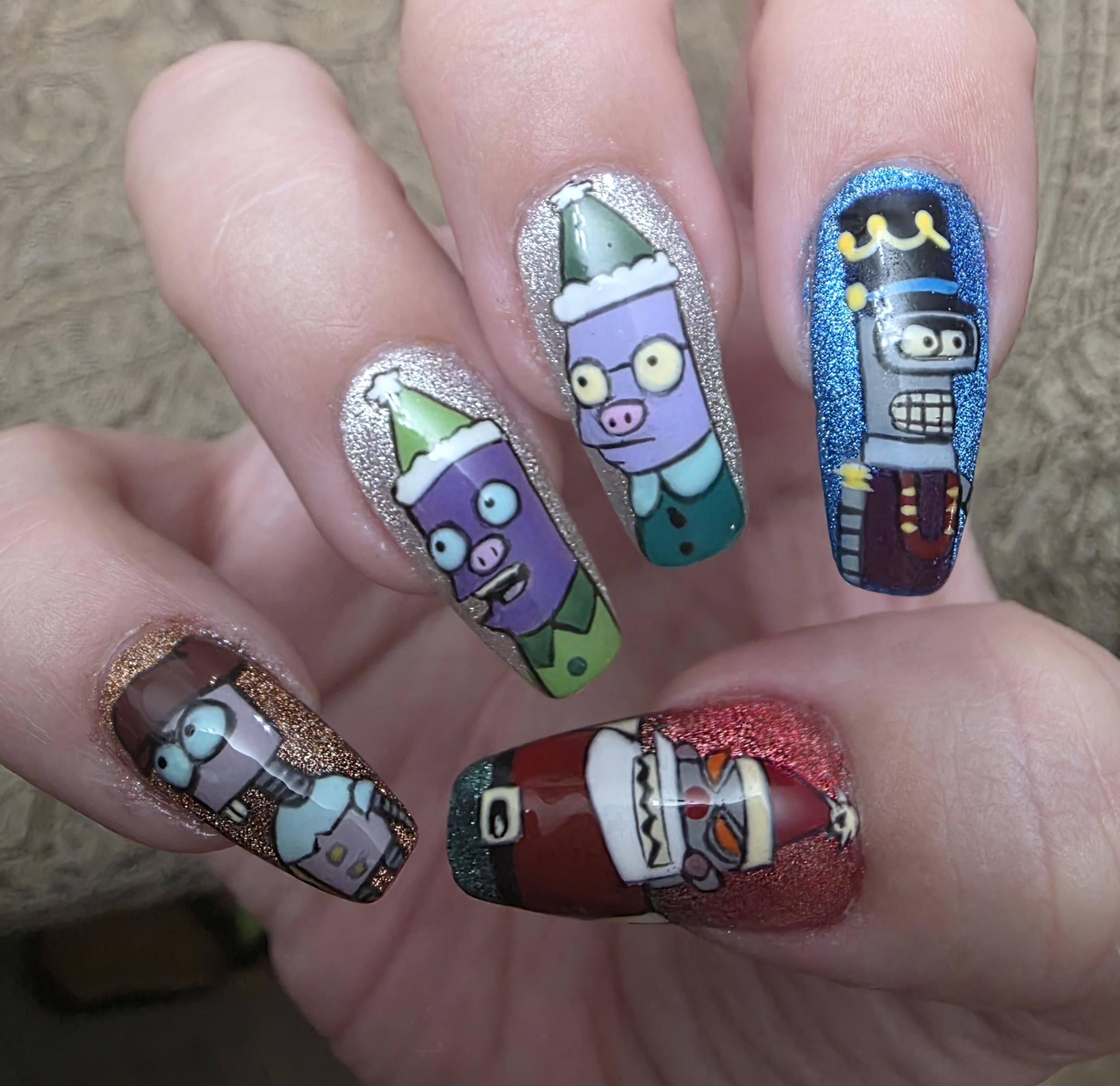 Background colors are Beetles Magnetic Polish. Gel polish used for characters are Beetles and Modelones. Husband's request 💅😎 by MrsScarred