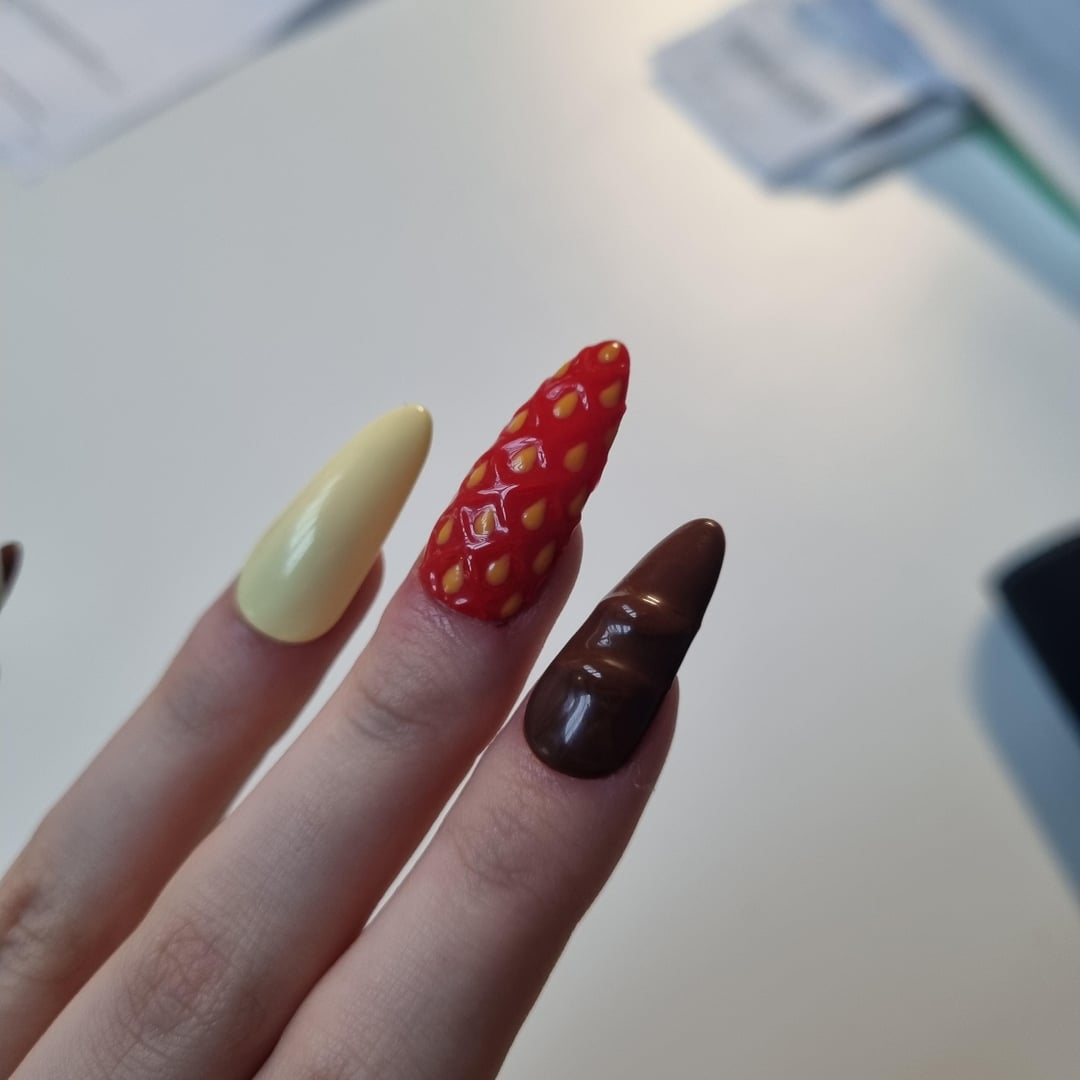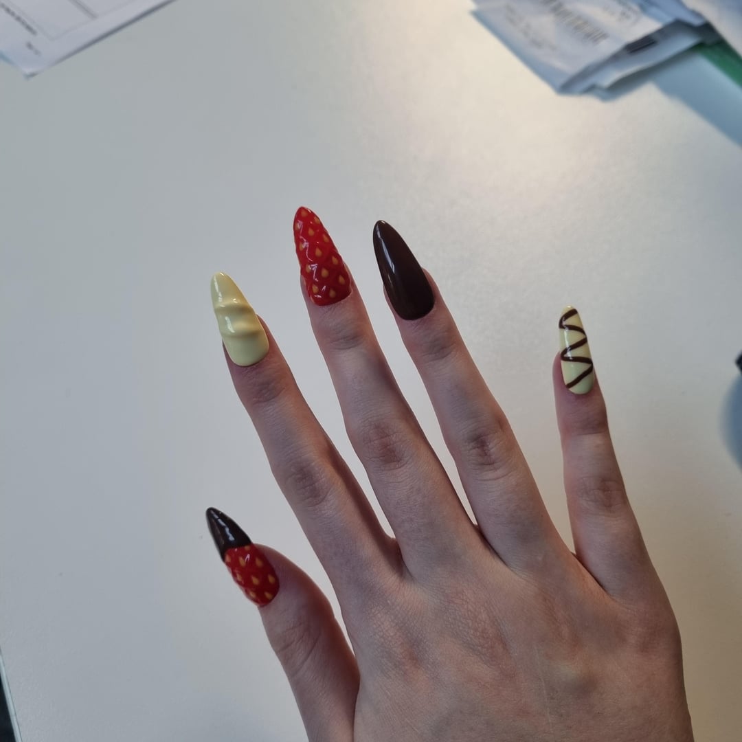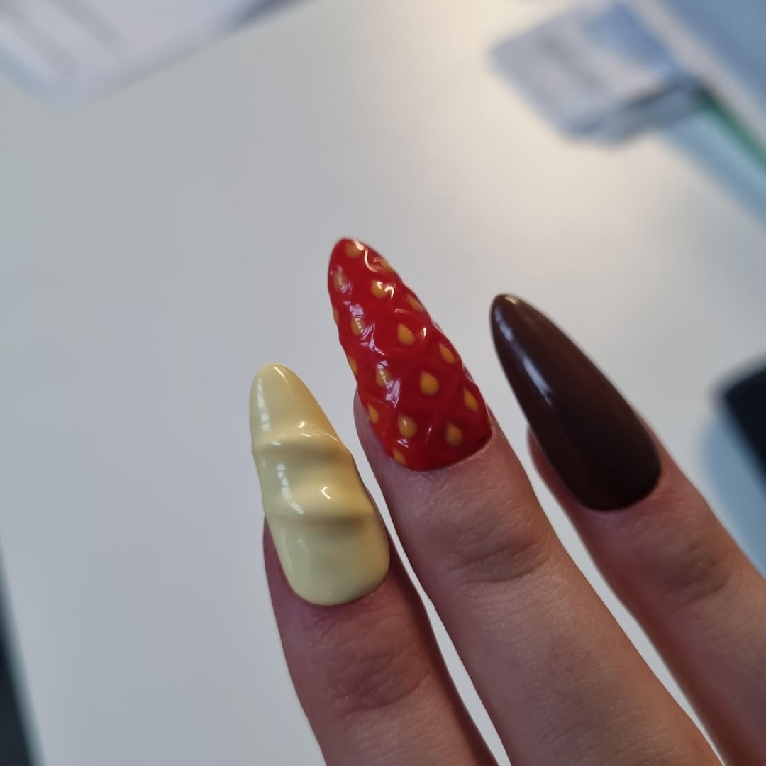 This was my first time doing anything with any kind of sculpting or 3D gel so I'm very happy with how they turned out!! I love the thumbs 🫶🫶
