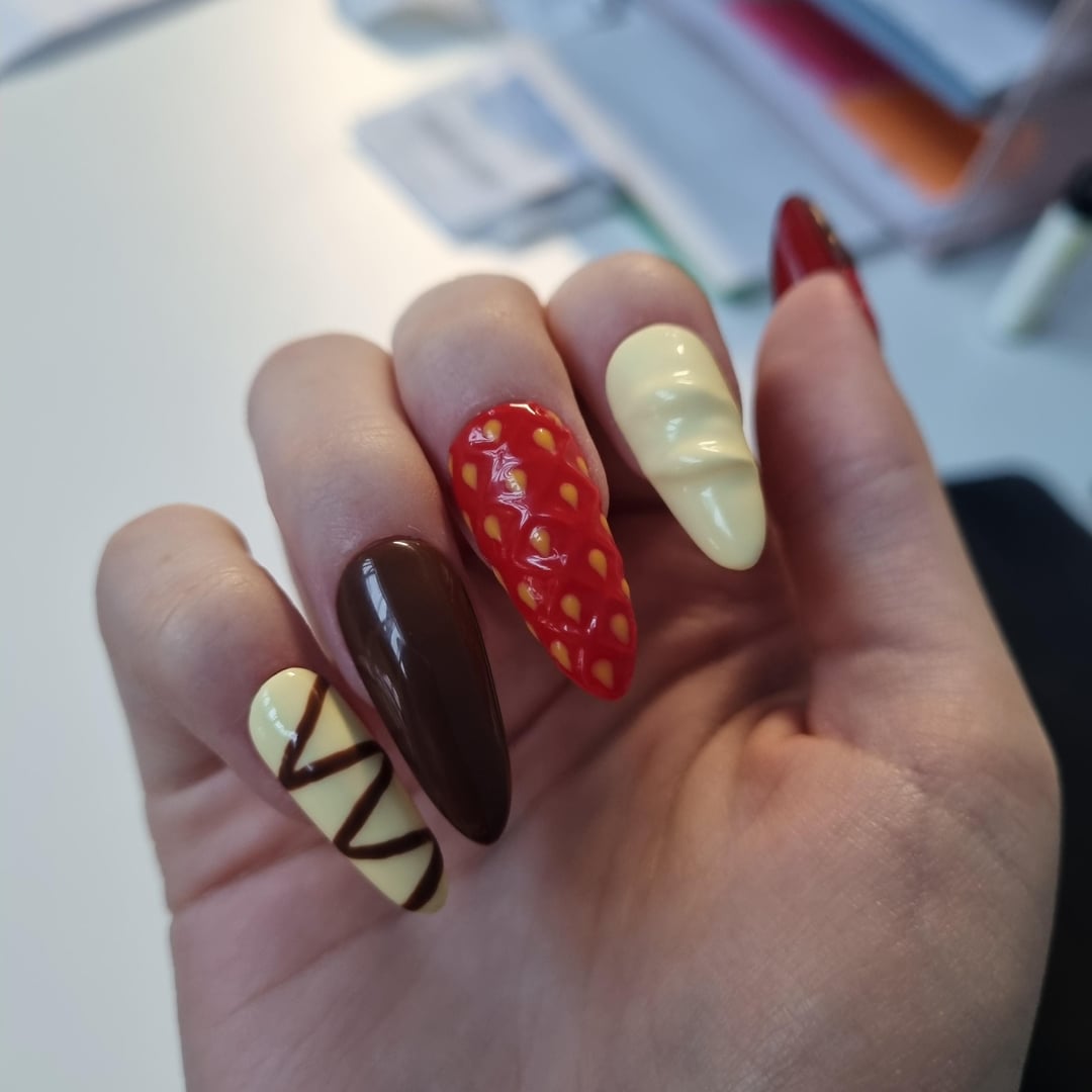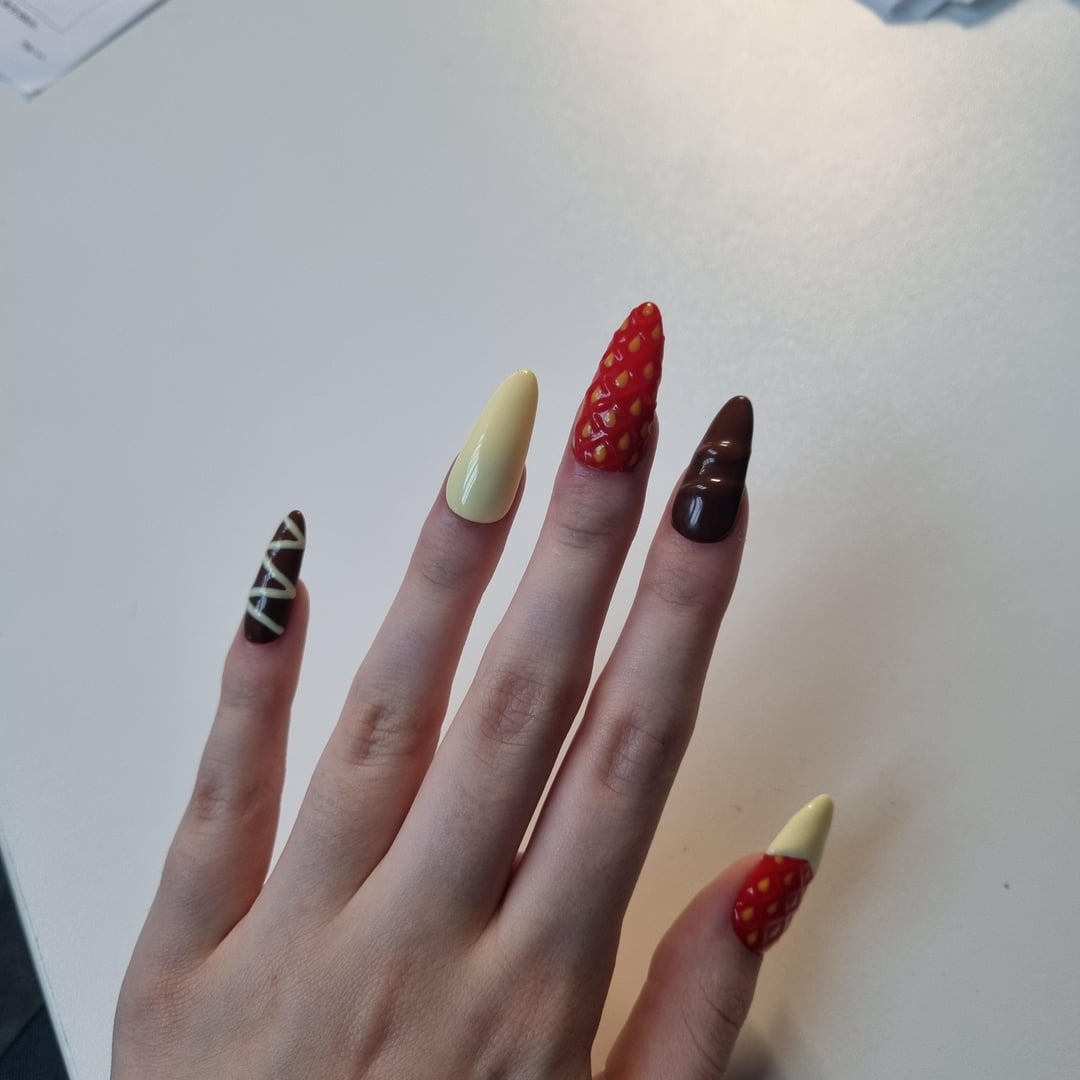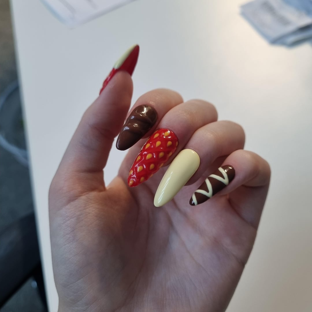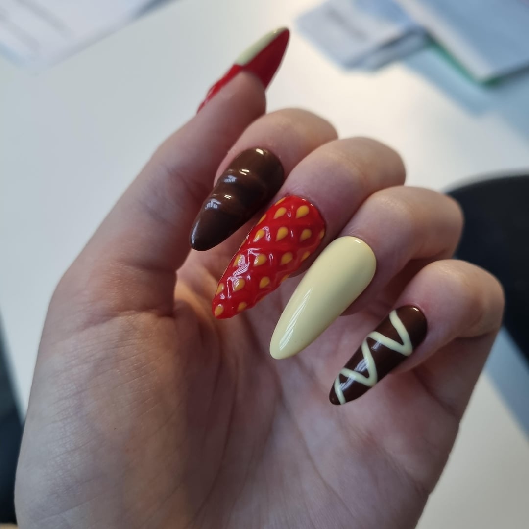 This was my first time doing anything with any kind of sculpting or 3D gel so I'm very happy with how they turned out!! I love the thumbs 🫶🫶