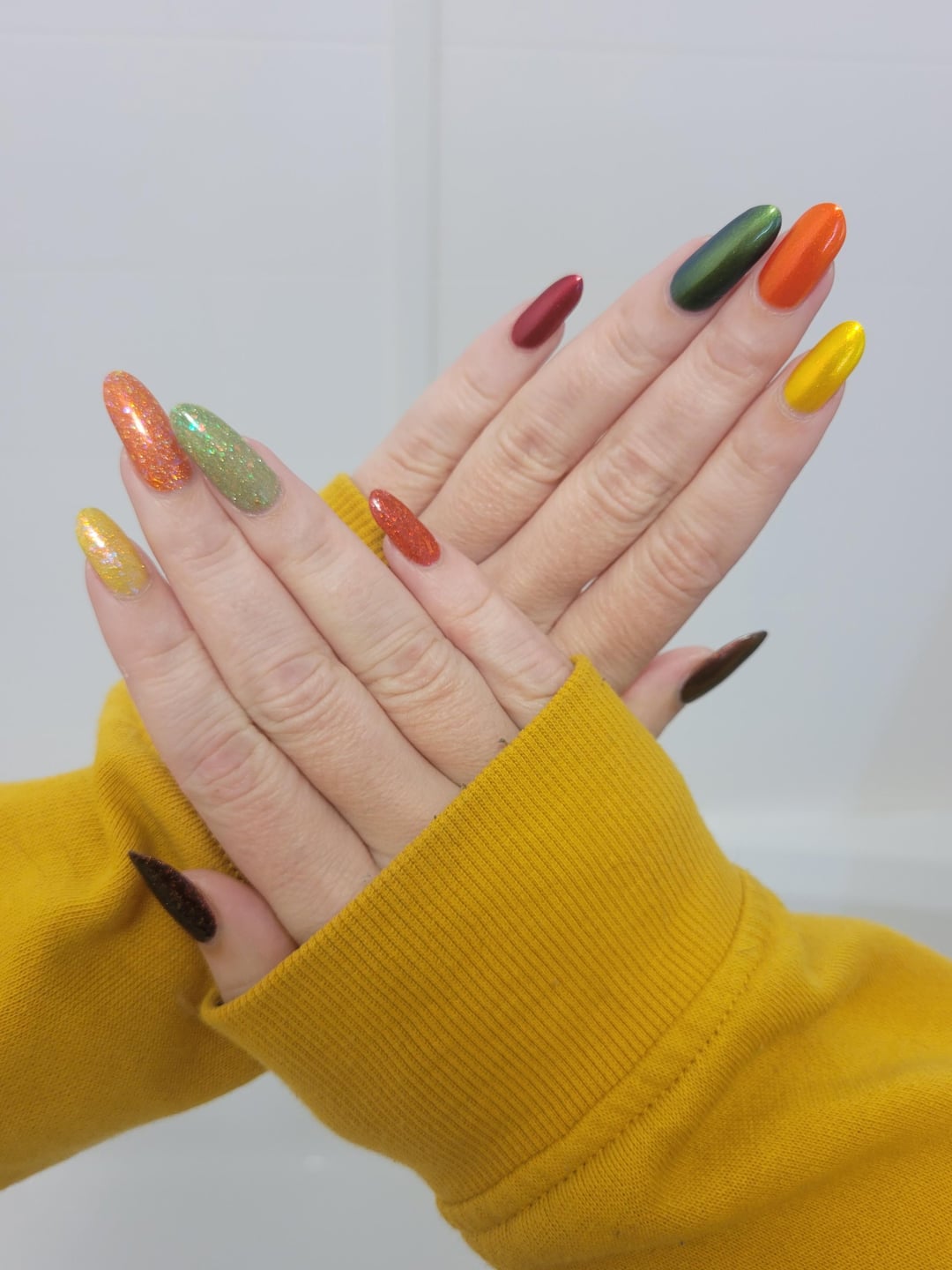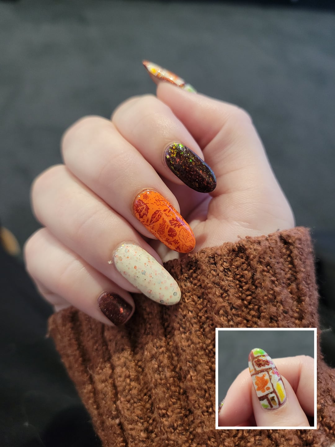 * bam! white, cocoa, heart of gold, papaya, sticky base coat, smudge free top coat, m536 – maniology