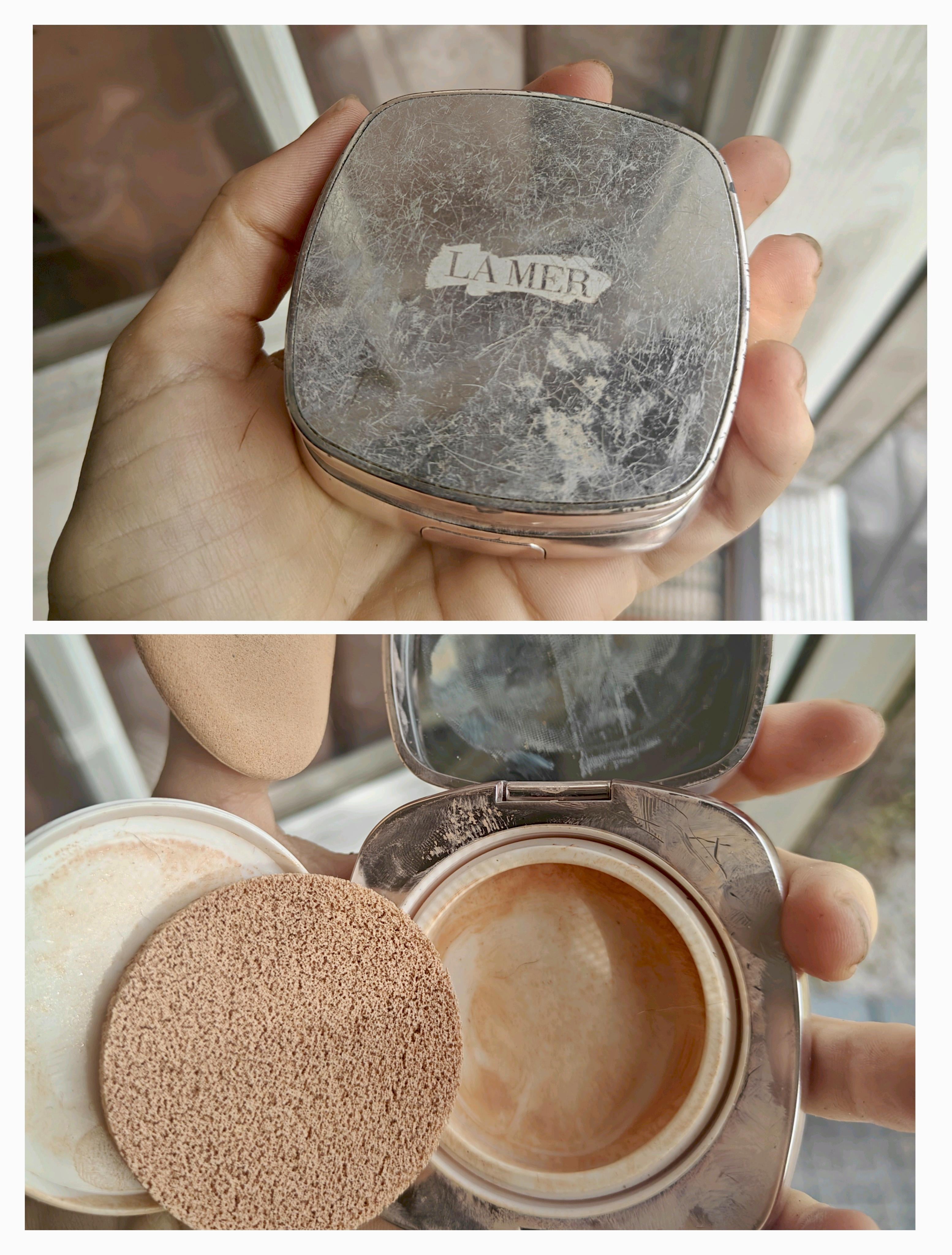 As you can see from all of the residue, I was definitely trying to squeeze every last little bit out and getting it everywhere lol. Cushion compacts are not easy to fully pan, but I did it The best I could. 💖