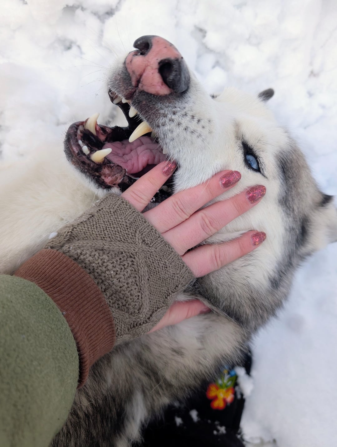 Please excuse the slight wear and tear, I've had this mani for a few days but I just couldn't pass up the opportunity to share this goofy photo of my husky playing in the snow 😆. Extra dog pic for tax at the end.