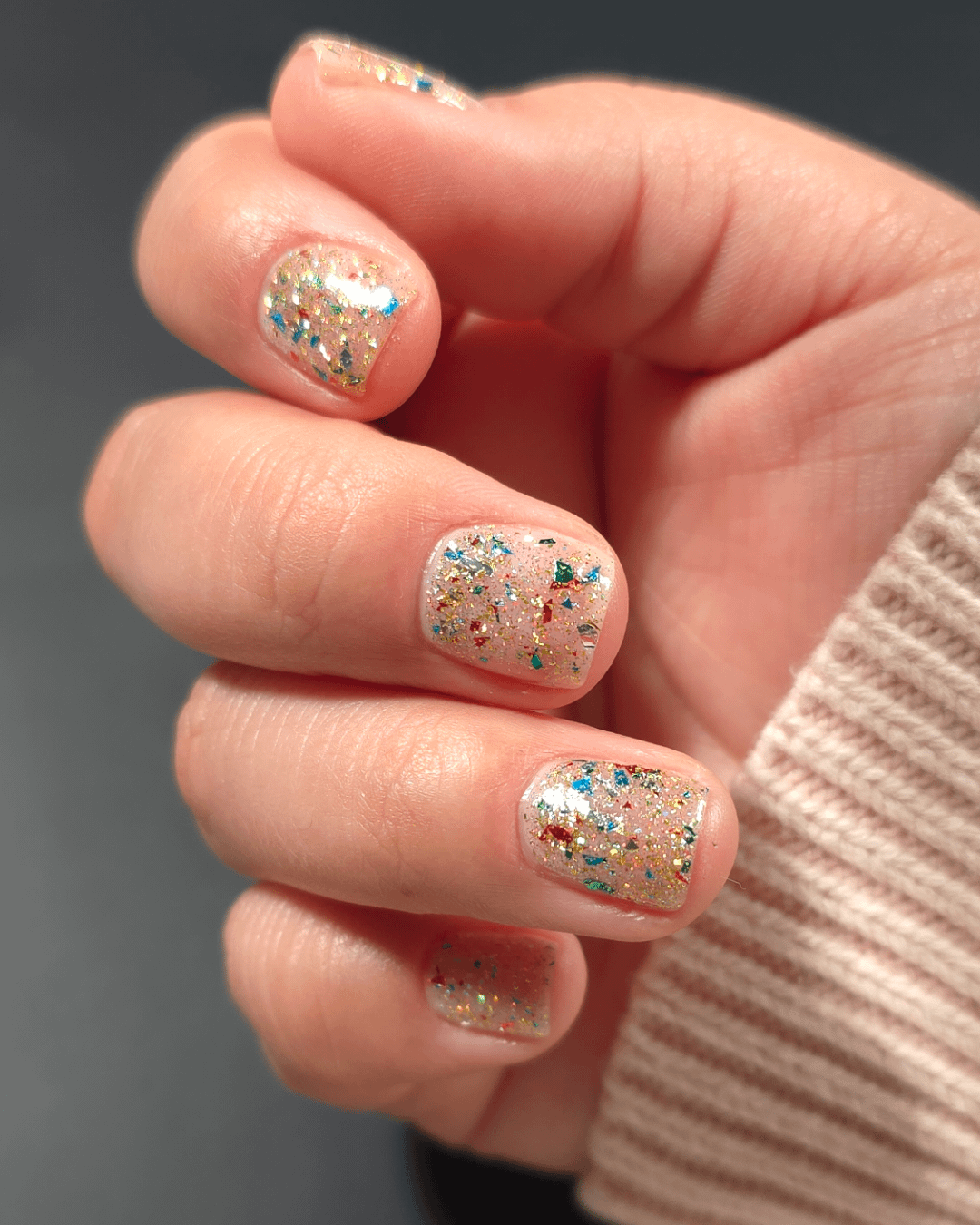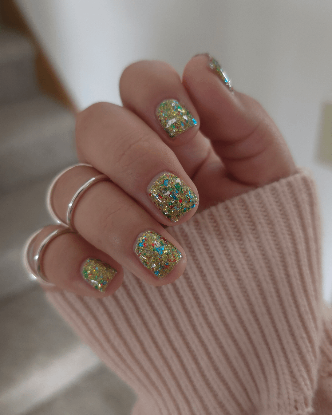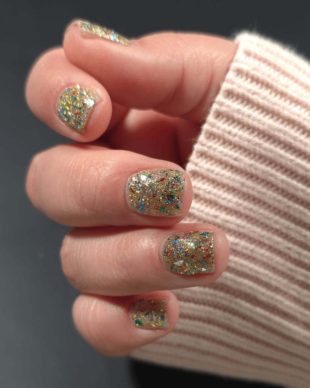 • i learned i should probably get a 'glitter grabber', this is a thirsty polish. i did 3 coats of top coat to get a smooth finish as i don't enjoy the texture finish. however, even then, some of my nails have a texture finish. i'm claiming defeat, i don't want to add a fourth coat of top coat 😭