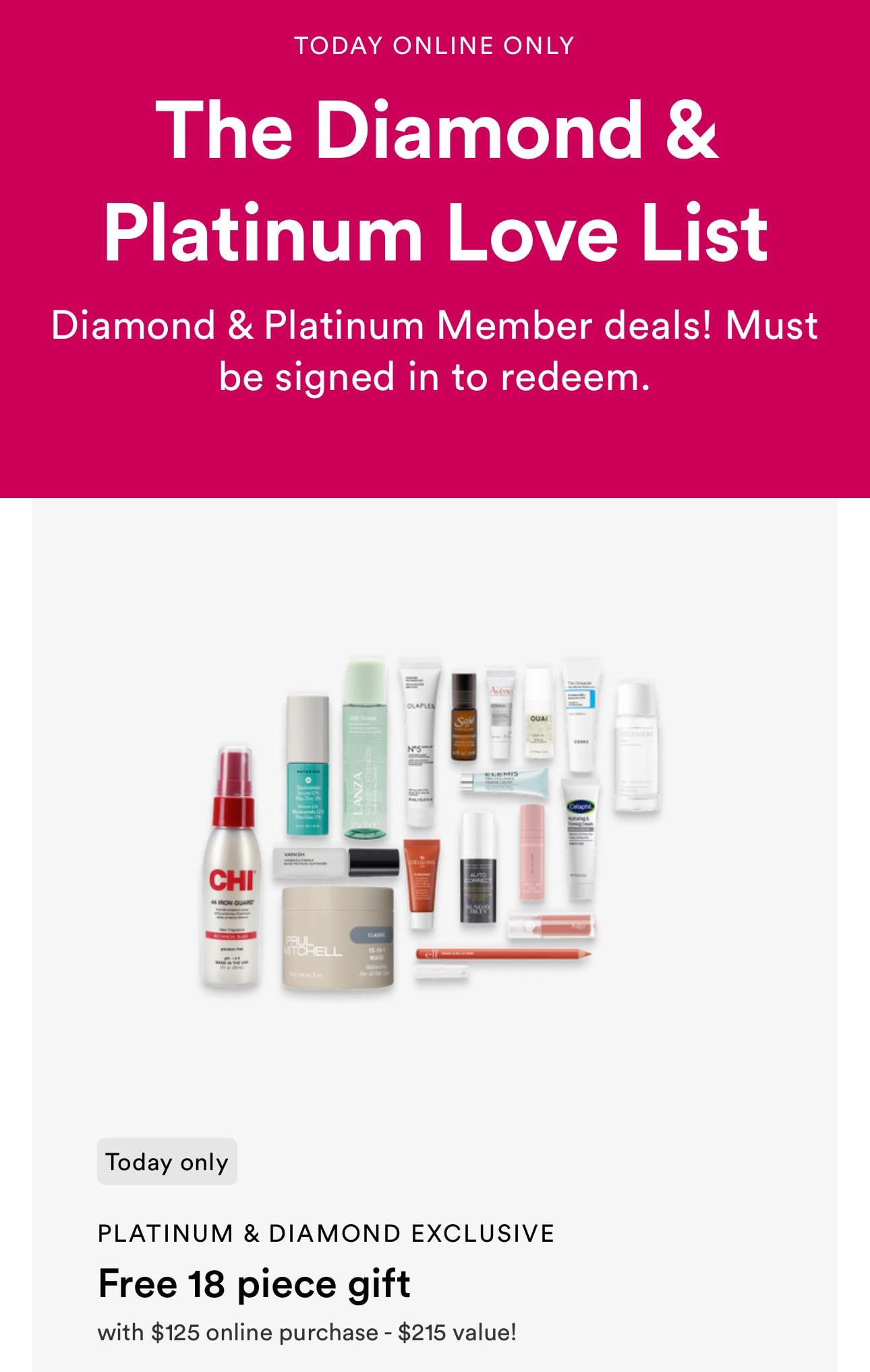 [$125 GWP bag (haircare-heavy)](https://www.ulta.com/p/free-diamond-platinum-exclusive-18-piece-gift-with-select-125-shipped-purchase-gwp7596498641?sku=2651636)