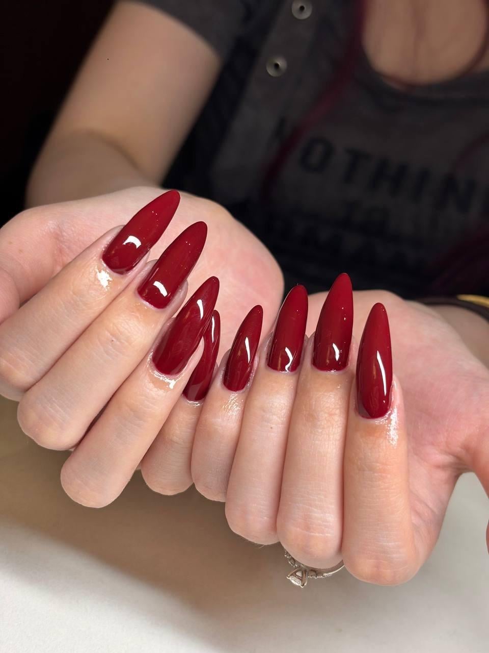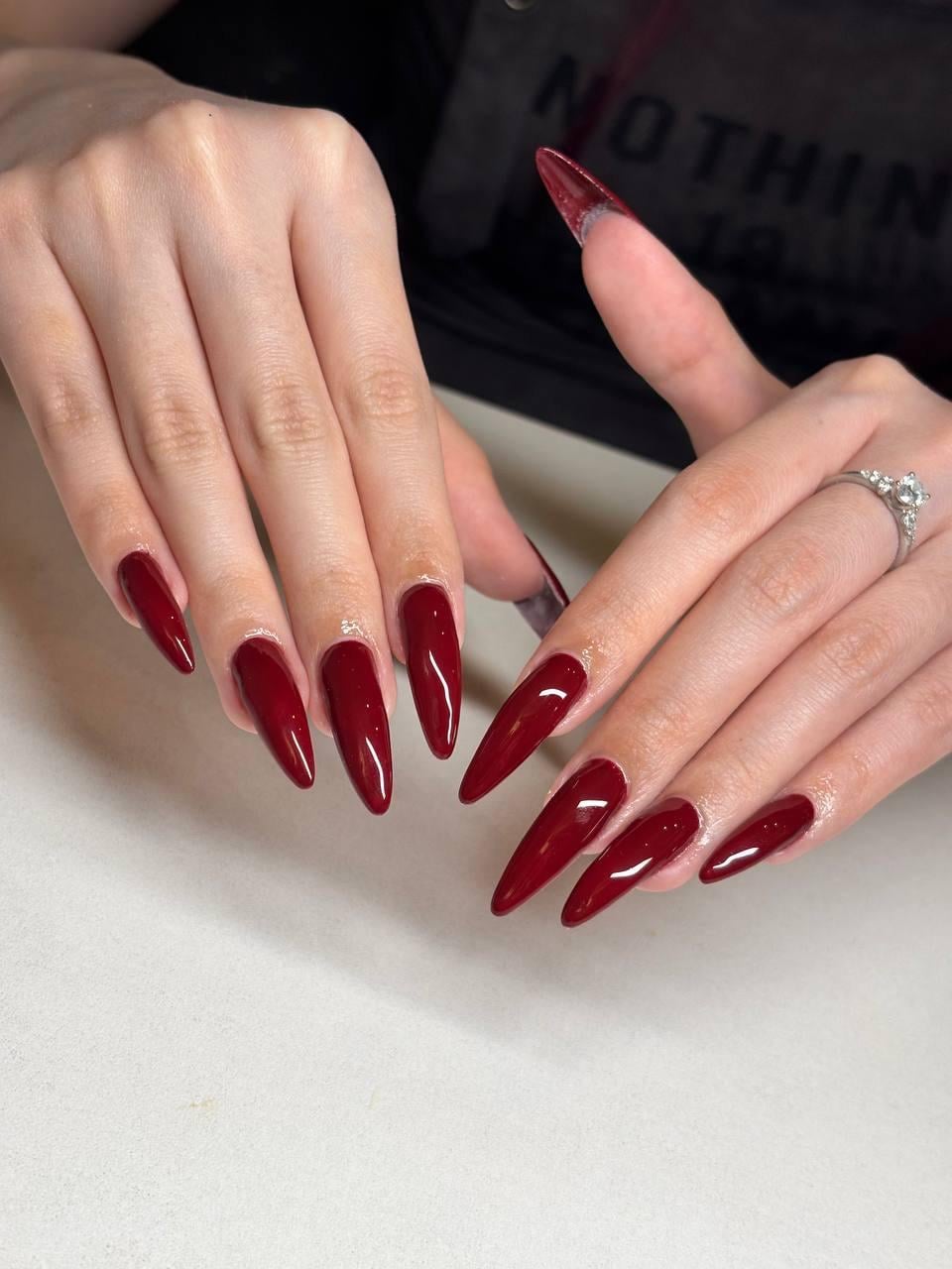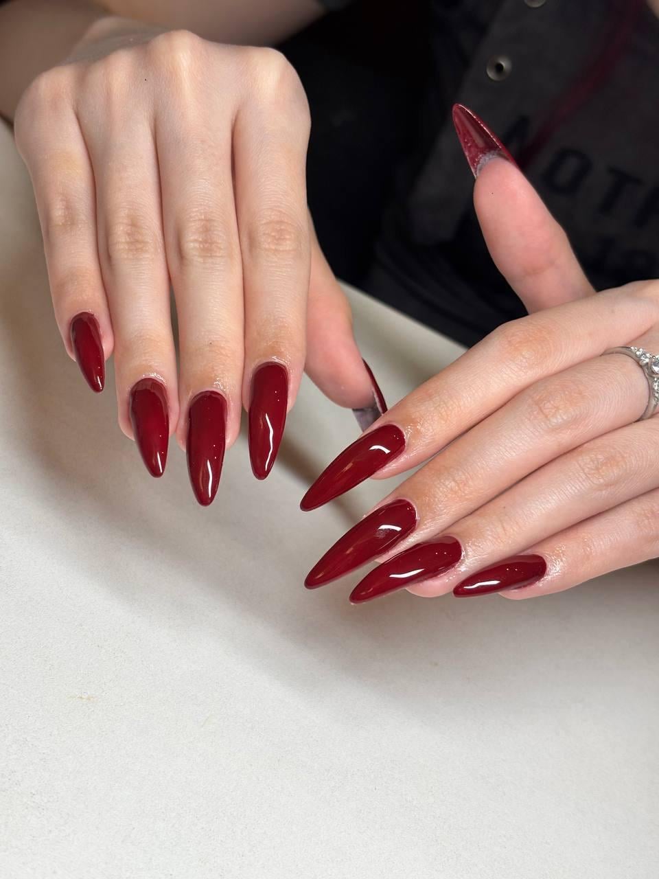 Fresh set I got done yesterday! It’s my third time doing plain wine red nails ( I usually prefer a little something design-wise) but I get so many compliments when I get this colour and I feel like I can never go wrong with it❤️ by InnocPixie