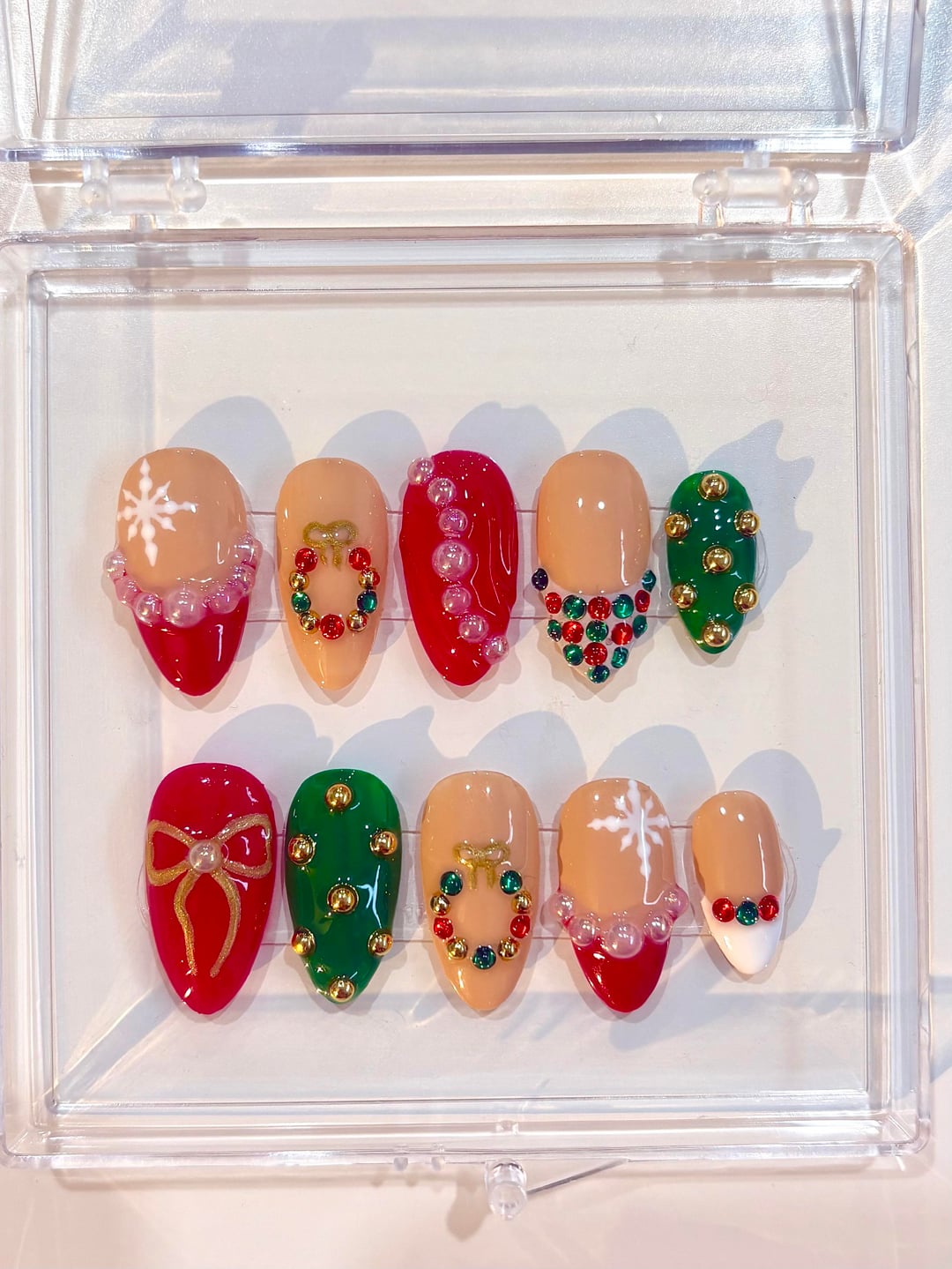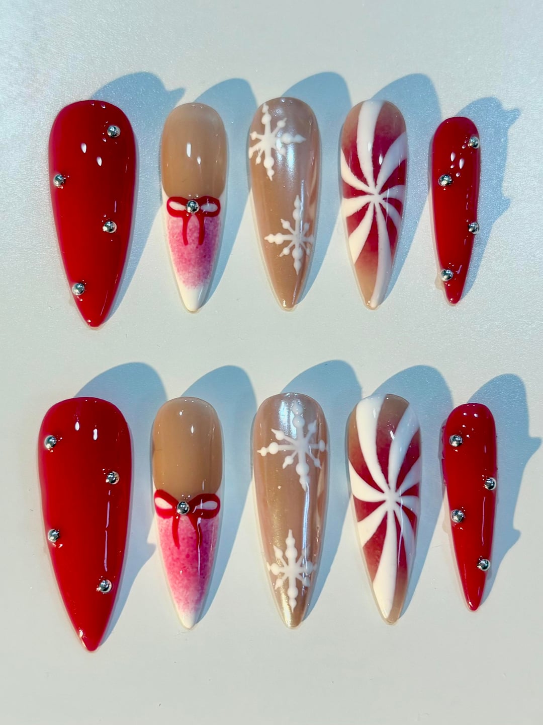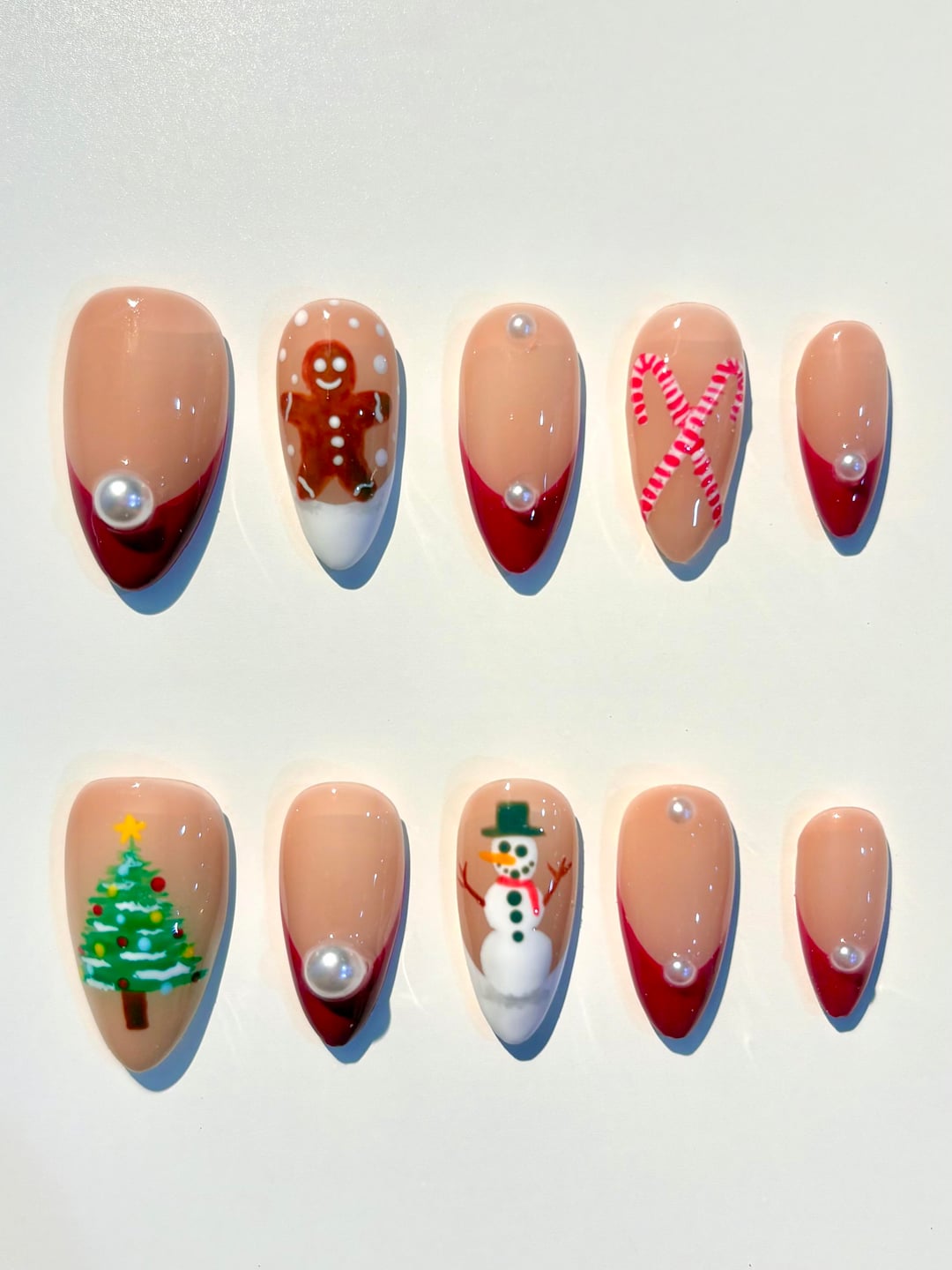 Here's some cute Christmas press-ons I made, and some of my favourite designs I've done! by Excellent-Home-7990