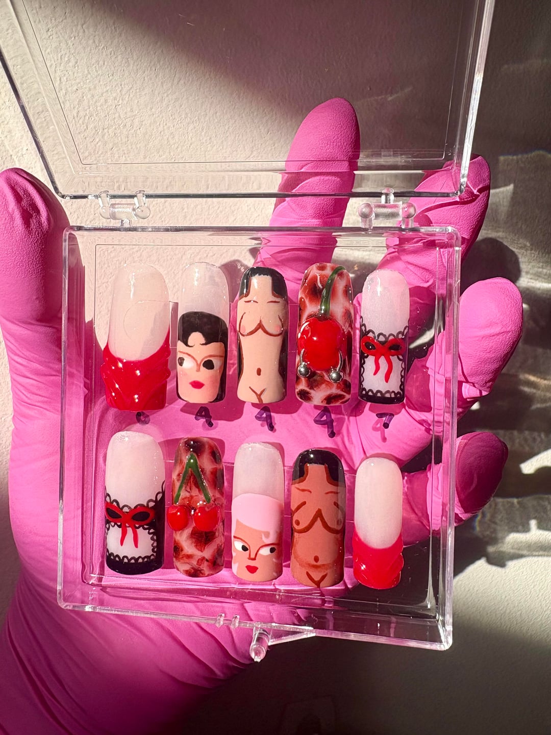 did this press on set for myself! wasn’t sure how i felt about them at first but i’m diggin them now 🙂↕️