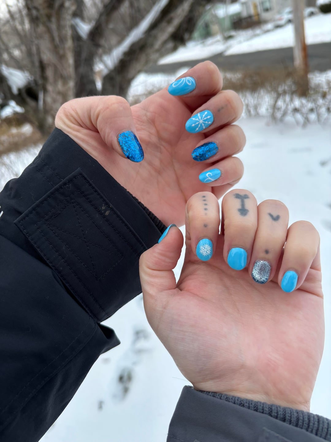 1. Damn this matching winter set is absolutely adorable. The shades of blue and the little snow themed designs look so perfect together. it’s amazing how both sets complement each other while still having their own unique details. u two nailed the winter vibe beautifully. Such a wholesome and stylish pair.