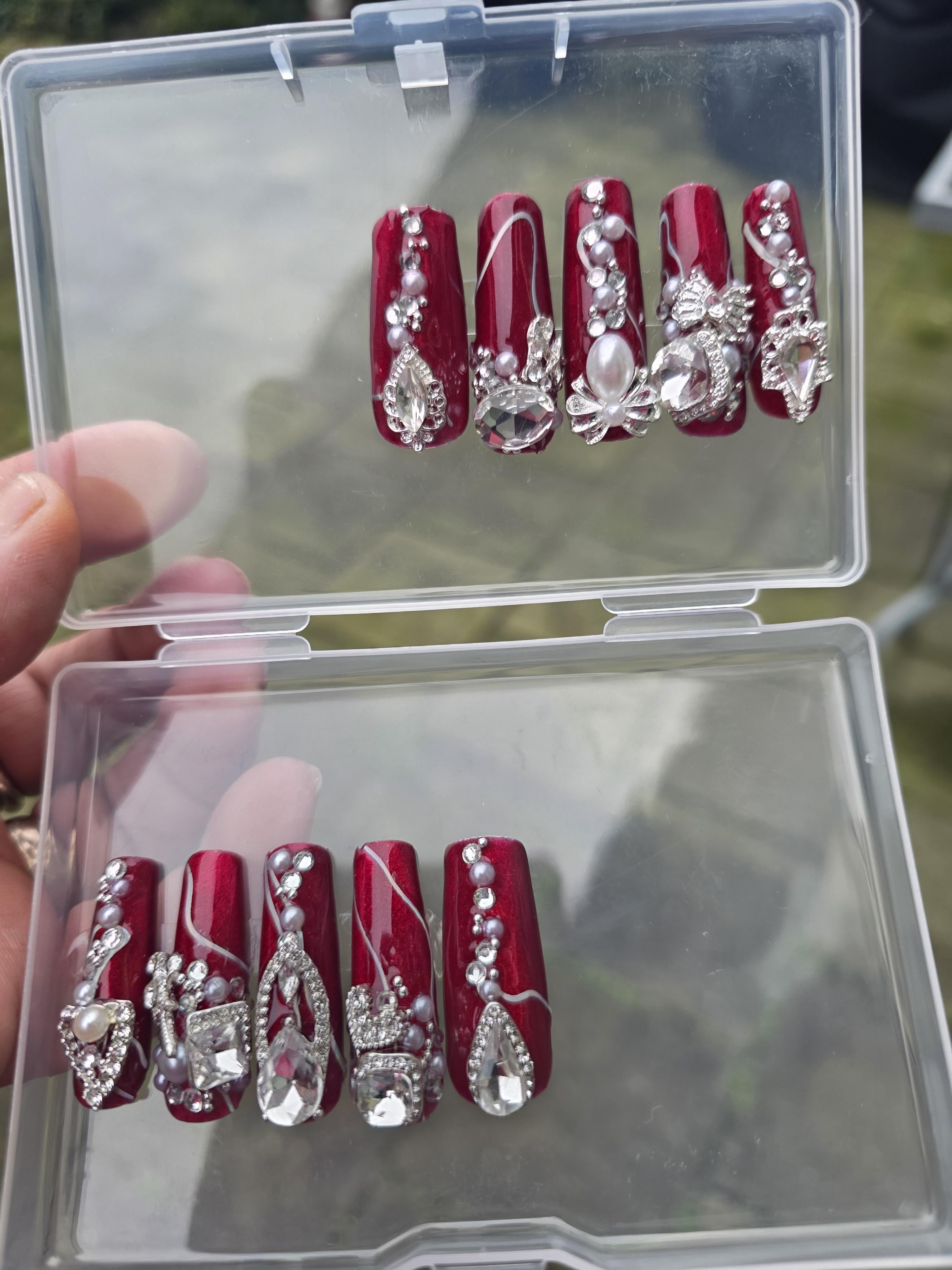 This is my 3rd homemade press on set, I call her "bling it on!"..I know it's not to everyone's taste but I love it.