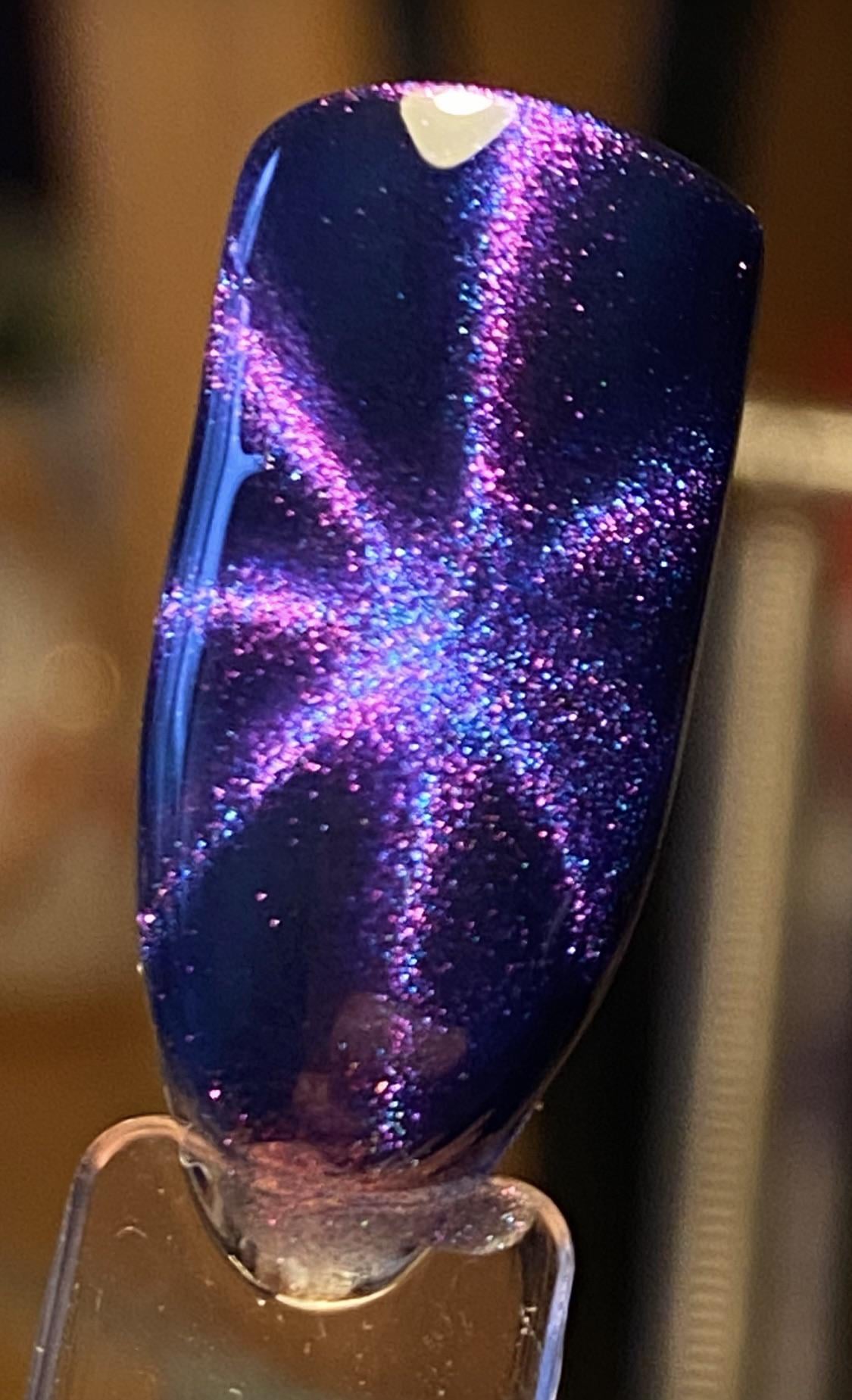 I used four neodymium magnet balls held together in a diamond pattern (♢), with the "high" and "low" corner of the diamond being positioned in vertical alignment with the nail plate (so the high and low point of the diamond align with the tip and cuticle, whereas the left and right corner of the diamond were aligned with the lateral walls of the nail plate). my magnet balls were quite weak, so i had to hover them over the nail plate rather than resting the finger on the magnet while it's below the finger. ymmv.