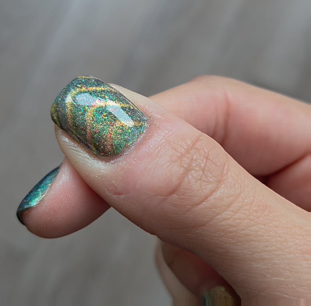 I was actually very unimpressed with the magnetic effect on my other nails with this polish using a 30lb Horseshoe magnet, Neodymium magnet, and both the "magnetize 2 layers of polish plus topcoat" and "magnetize only the topcoat" methods. The fact that the effect is sooooo crispy from using these cheap magnets from Amazon absolutely blows my mind.