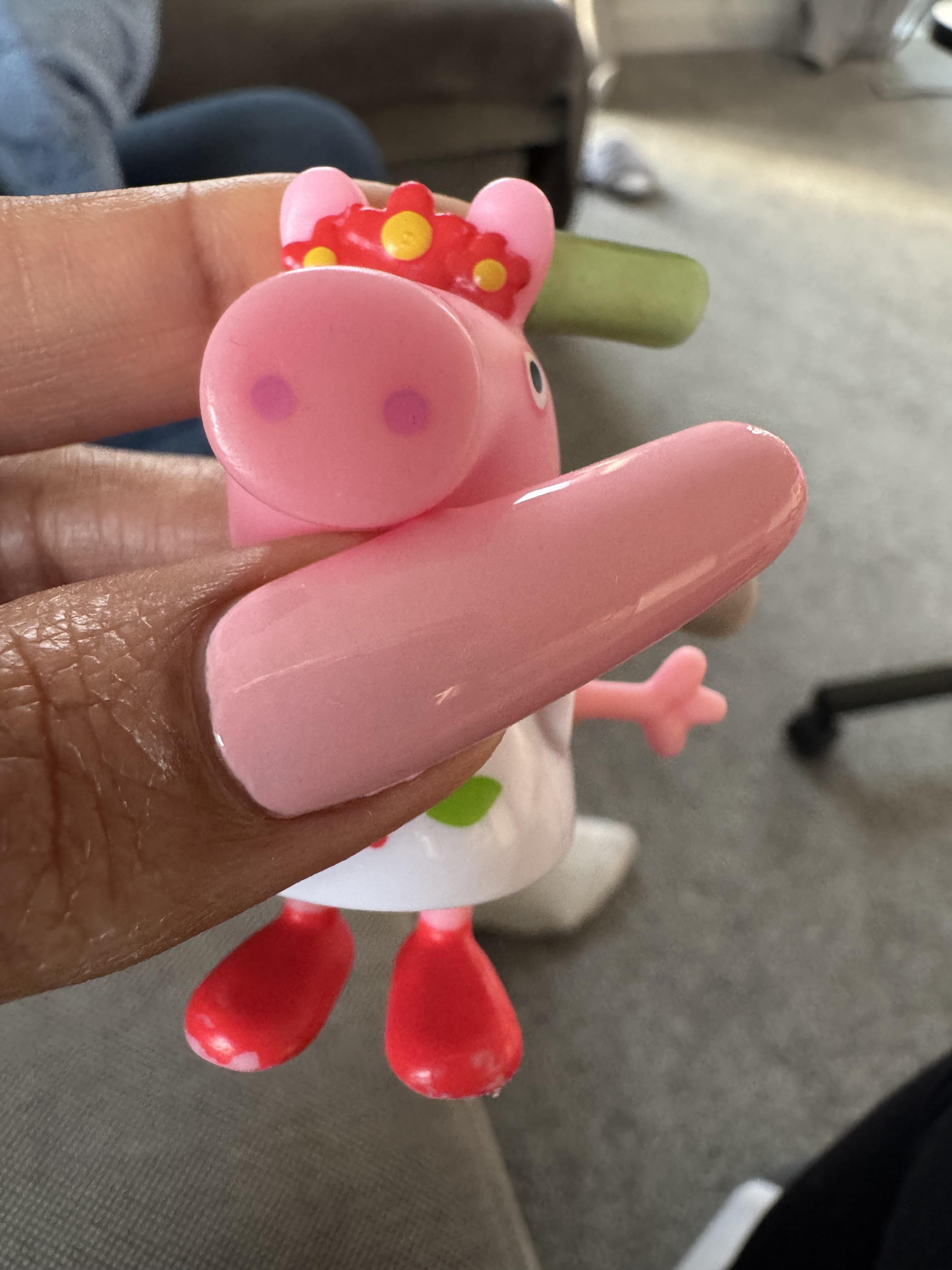 Thumb: 1 coat cirque colors paint n peel, 1 coat sally hansen double duty, 2 coats Fancy Gloss Barbie Girl, 1 coat essie good to go by Prudent-Nose5092