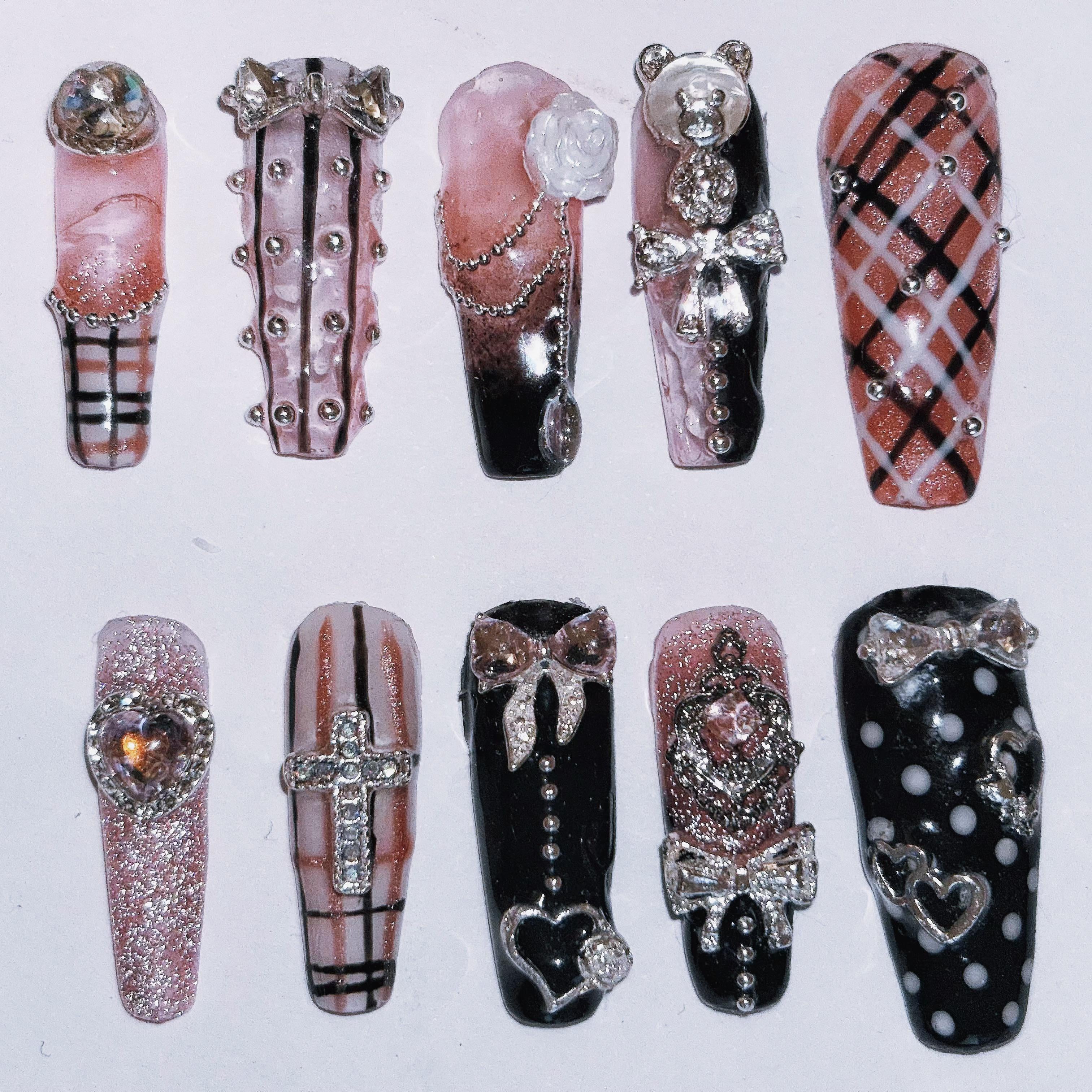 Another take of a previous set I’ve posted here! I wanted to try a different nail shape and a few different designs.