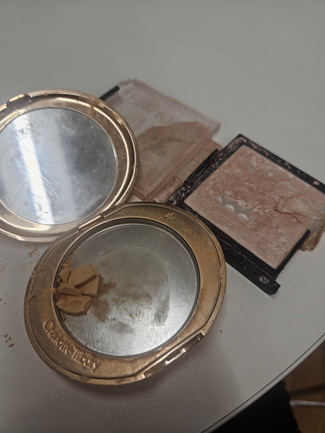 Finally hit pan on my Charlotte Tilbury pressed powder, but she decided to snap right at the finish line. As soon as it gets down to that last fragile ring it always cracks, and this has happened with my other CT powders too. I’ll probably get a couple more uses out of it before it’s completely gone.