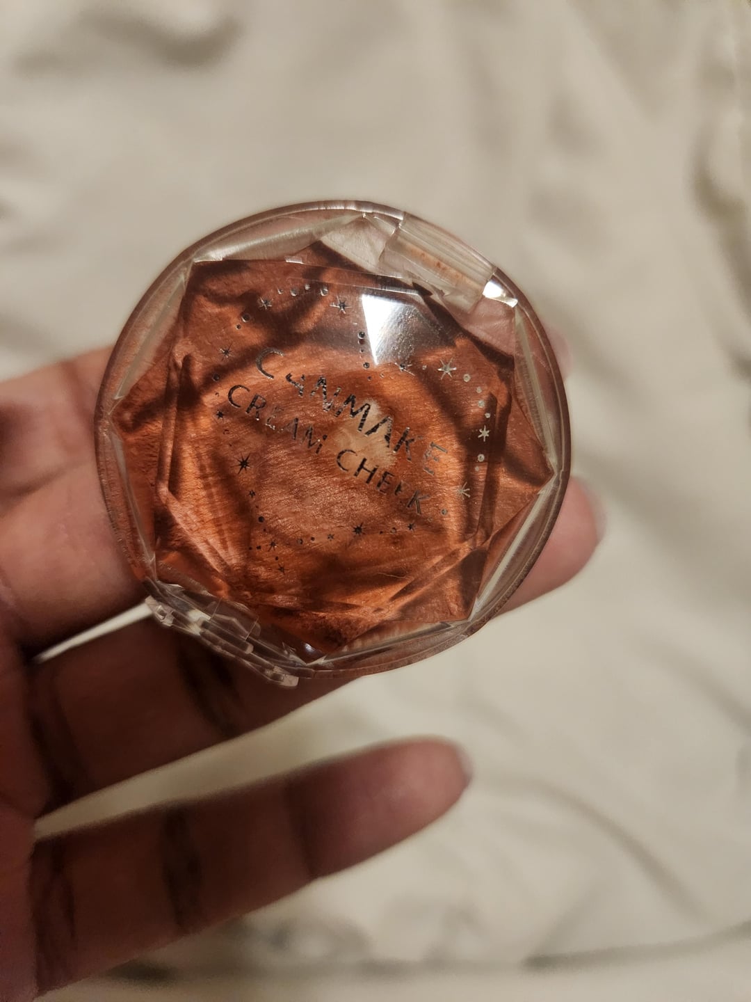 Carmake cream cheek 17 (caramel latte). Bought this at daiso a while ago and it's the perfect warm orange/pinky flush on me. I have yet to find this color again anywhere online where Canmake is sold. by ignorantslutdwight