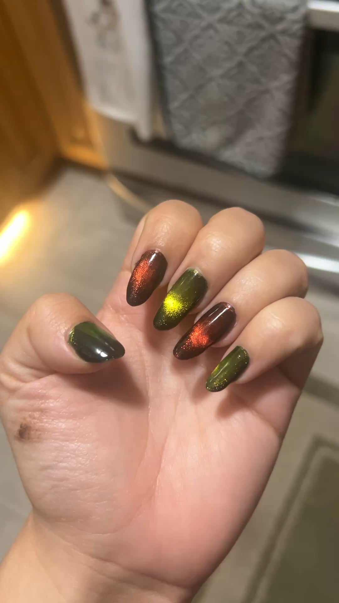 I’m not sure if it’s giving Christmas like I wanted to though 😭 I feel like the red is a bit more orange but I felt like if I used Lord Vader for the red that the white magnetic would wash out the red base as a glass bead! I guess I know what type of polish I’ll be looking for next lol