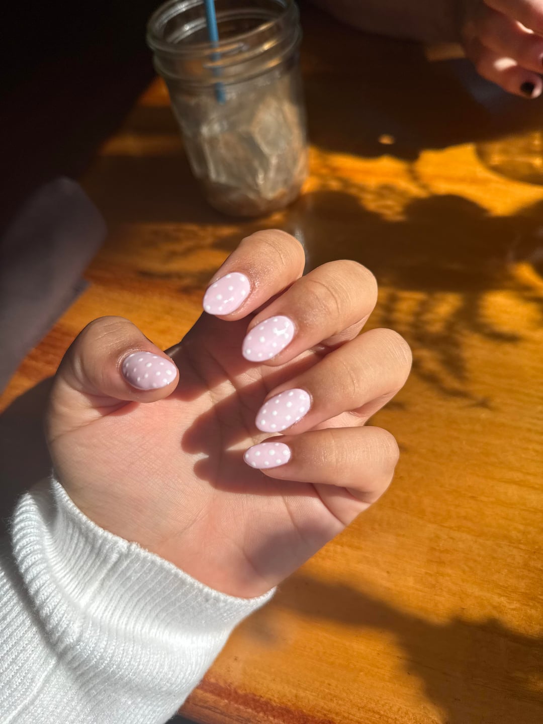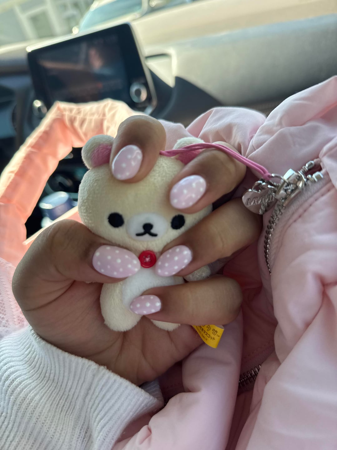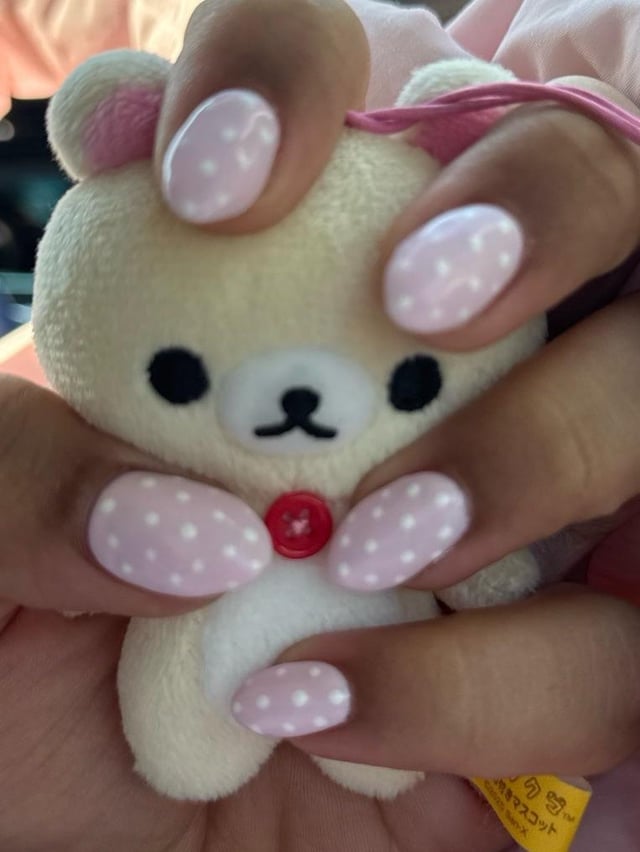 Honestly think polkadot nails are my favorite nail trend, they’re so cutie. The nail salon I go to is nothing special, but they’re always so gentle and kind and cleanly. They even oil and massage my cuticles after _^ (sorry, don’t know how to pose lololol, using korilakkuma as a prop :,))