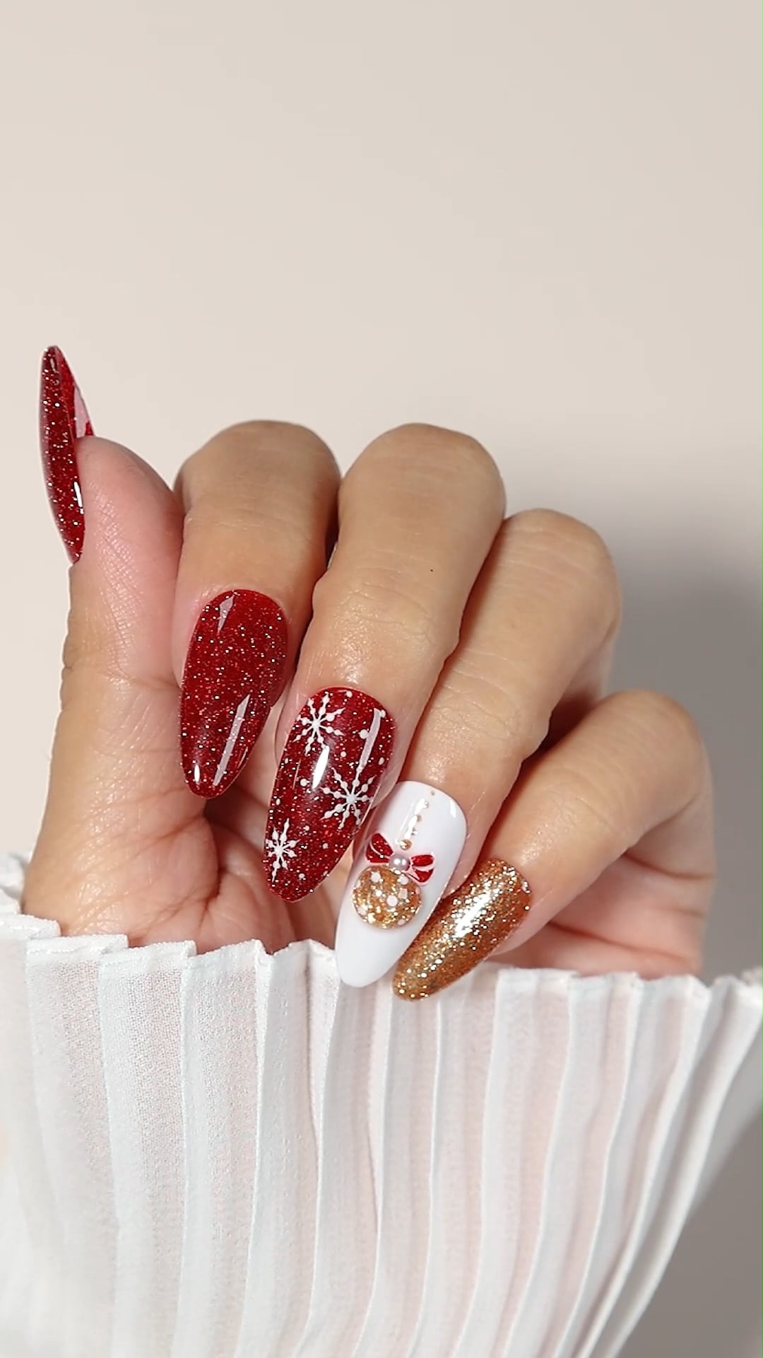 Try to do the gold glitter Christmas ornament nail design with AIMEILI Gel Polish, Suitable for holiday!~! by Many_Yogurtcloset282