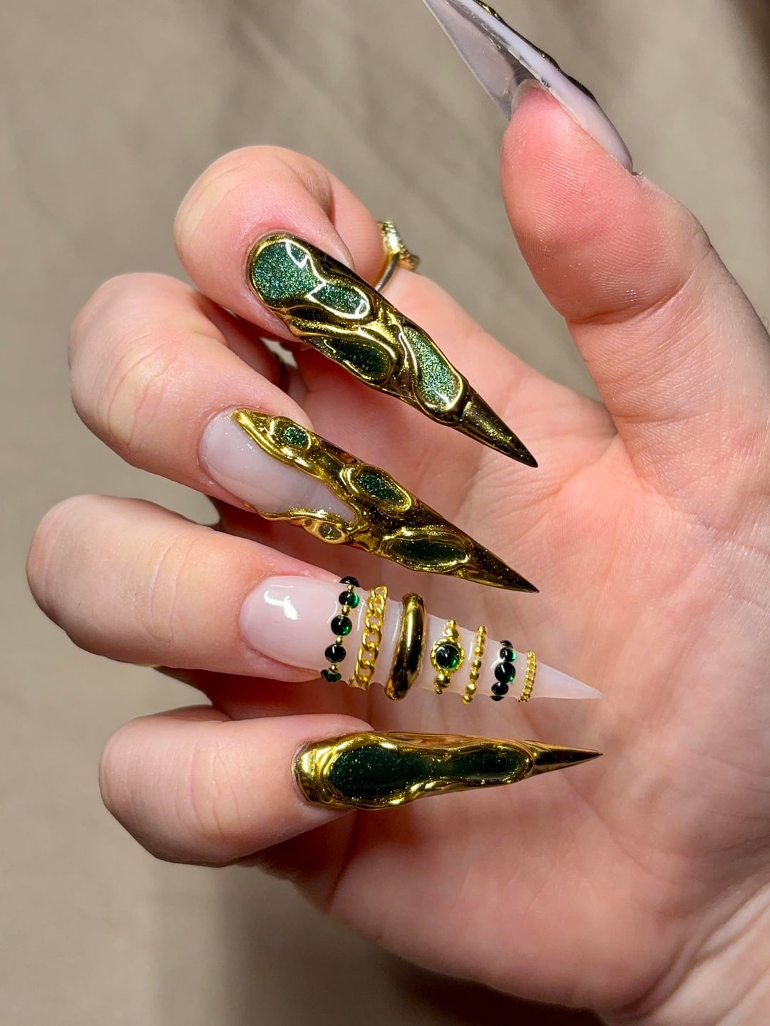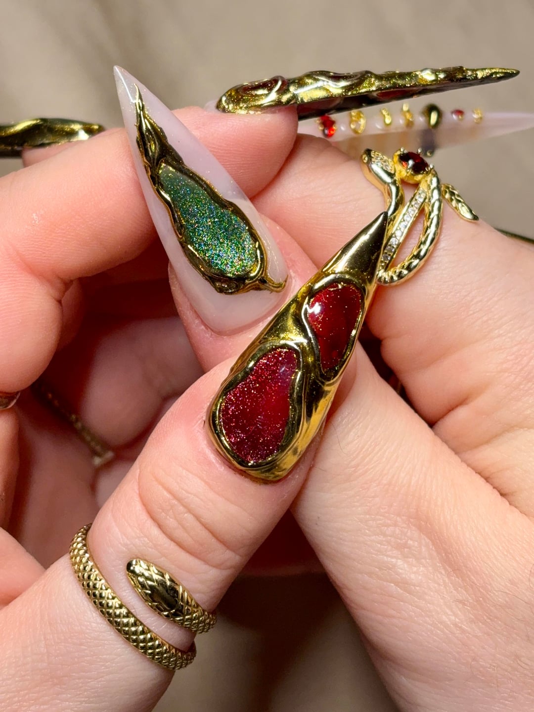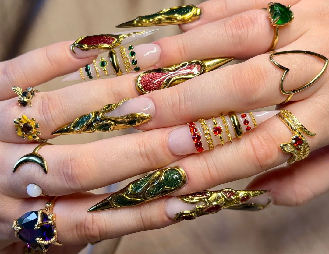 My Christmas set this year 💚❤️ Had a few mental breakdowns while doing the chrome but I am so happy with the results!! by TheCitron