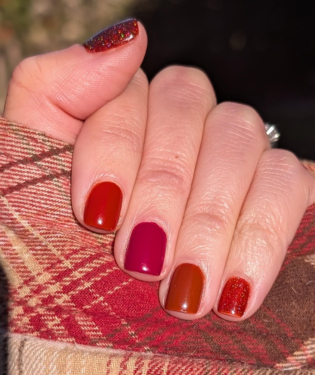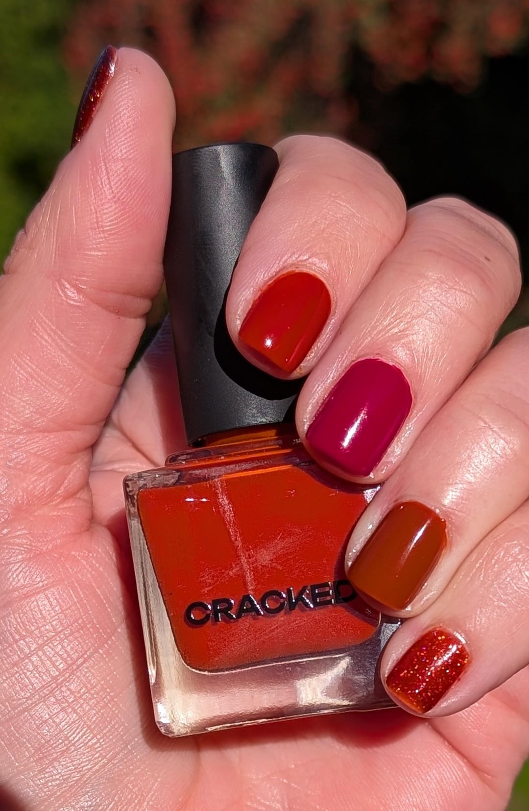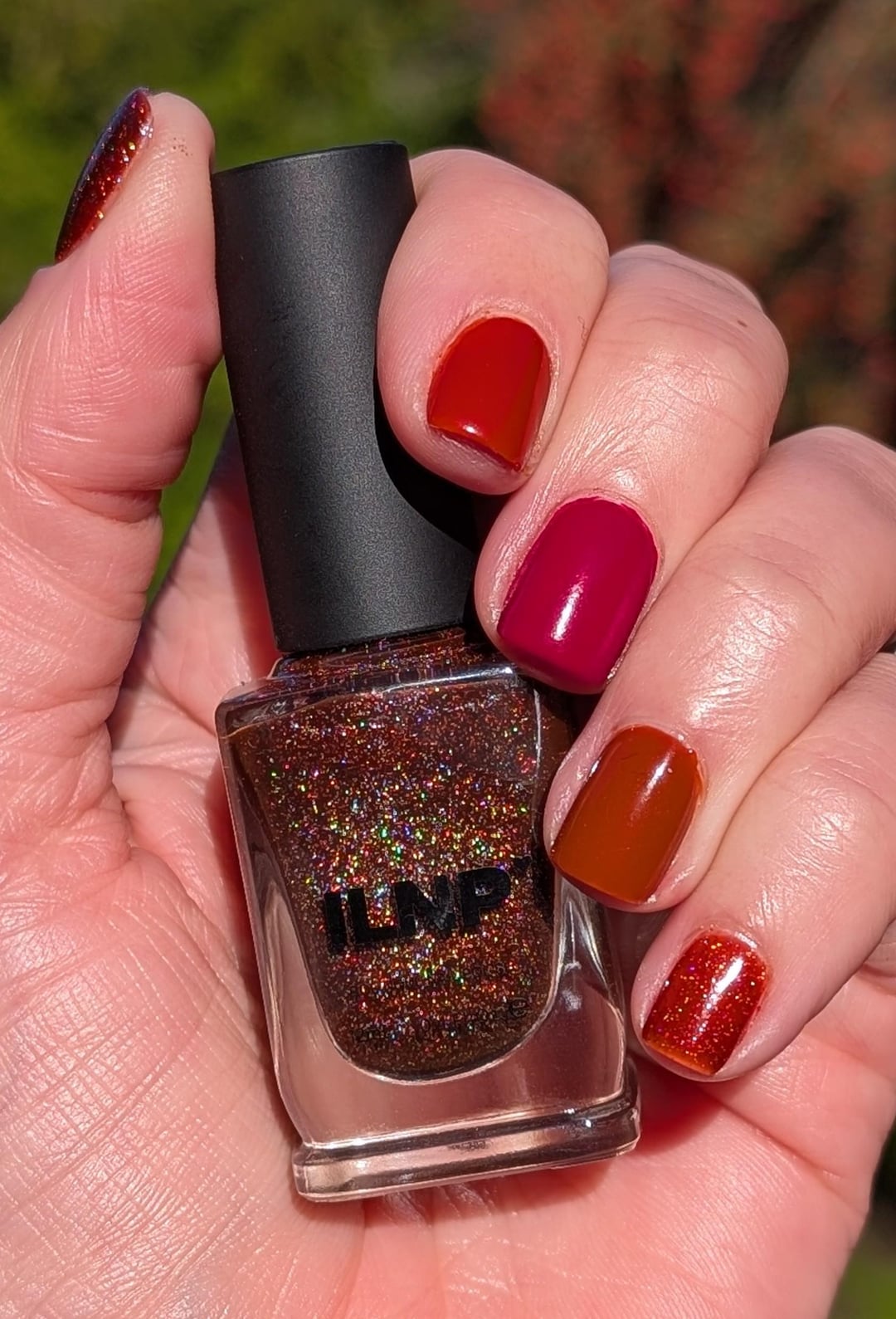 Polished For Days Bittersweet Painted Polish Talk Turkey To Me ILNP Brownstone Skittle thumb to pinky: ILNP Spiced Cider, Cracked Delicacy in Sardinia, Cracked Calabrian Pepper, ILNP Caramel ILNP Hidden Path by Content-Flight6371