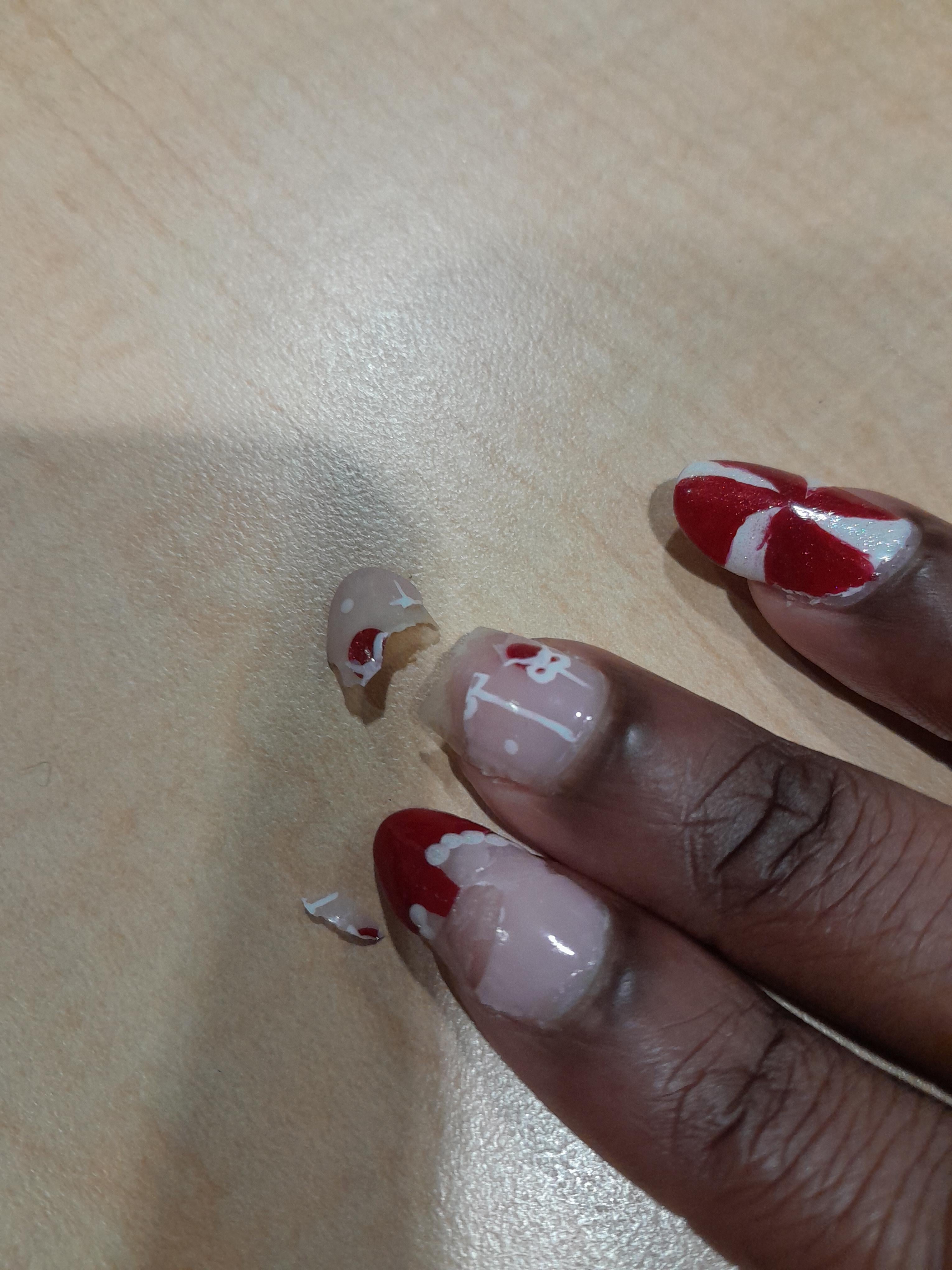 If you saw my last post about this set, it was kind of cursed and gave me a lot of issues trying to complete it. Unfortunately, the problems didn't stop after it was done because my middle finger nail broke in my glove while I was getting food for a late night study session last night. 😭 I kinda knew this was gonna happen because my nails have been kinda fucked and in dire need of a refresh (this nail in particular was quite thin and bendy and had a crack in it from being hit against something), and I was planning to chop them all down this weekend anyways. But man, I was really hoping this set would last until the end of the week. 💔