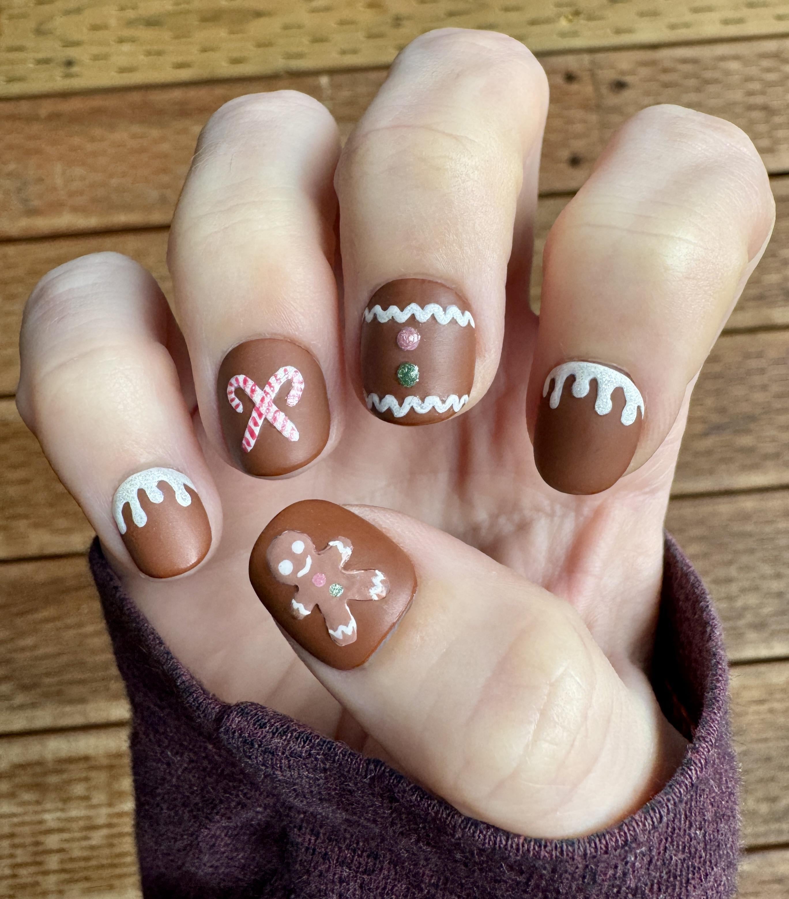 1. Omg insanely cute!! And so fun to see Christmas nails using brown- it’s not the normal green/red/gold thing! Did you do those yourself?