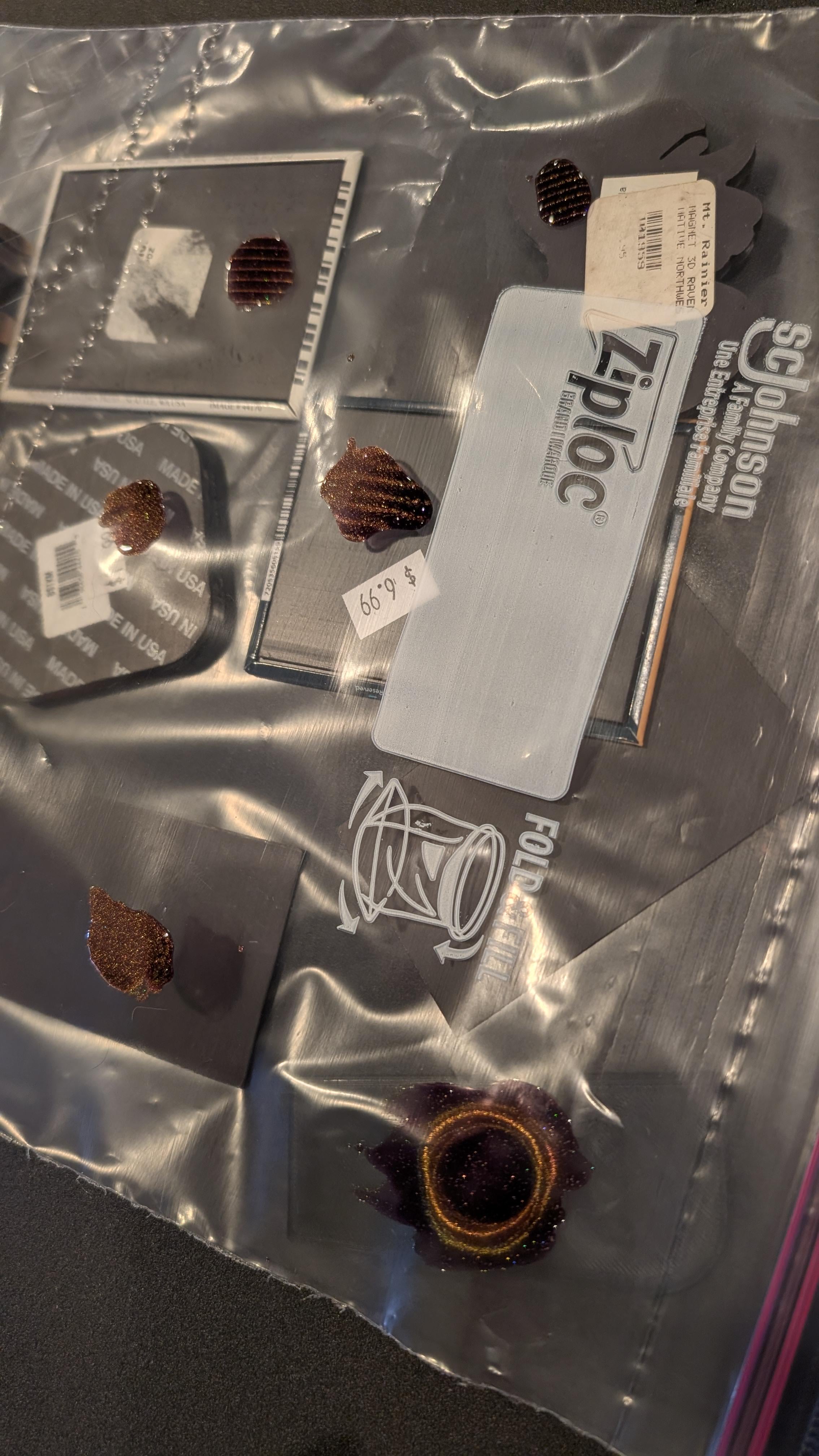 The polish is mooncat illusionist. I just put all my fridge magnets upside down in a ziploc and painted over them to see what patterns I could get. Moral of the story is I need more small round magnets!