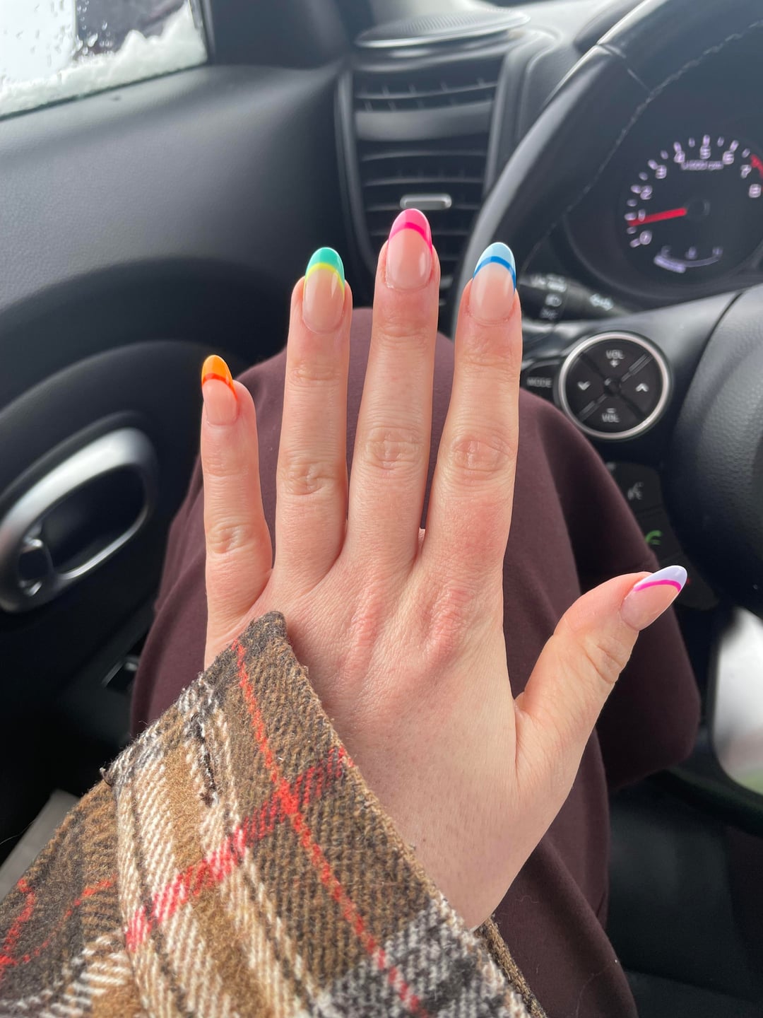 mbpadmr on December 13, 2025 3:34 pm Very nice colourful French Tips. I like the different effect it gives with the various different colours and shades on each nail 😊💅❤️