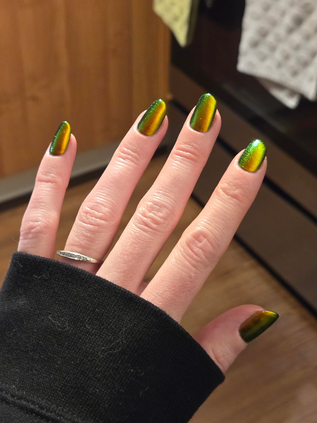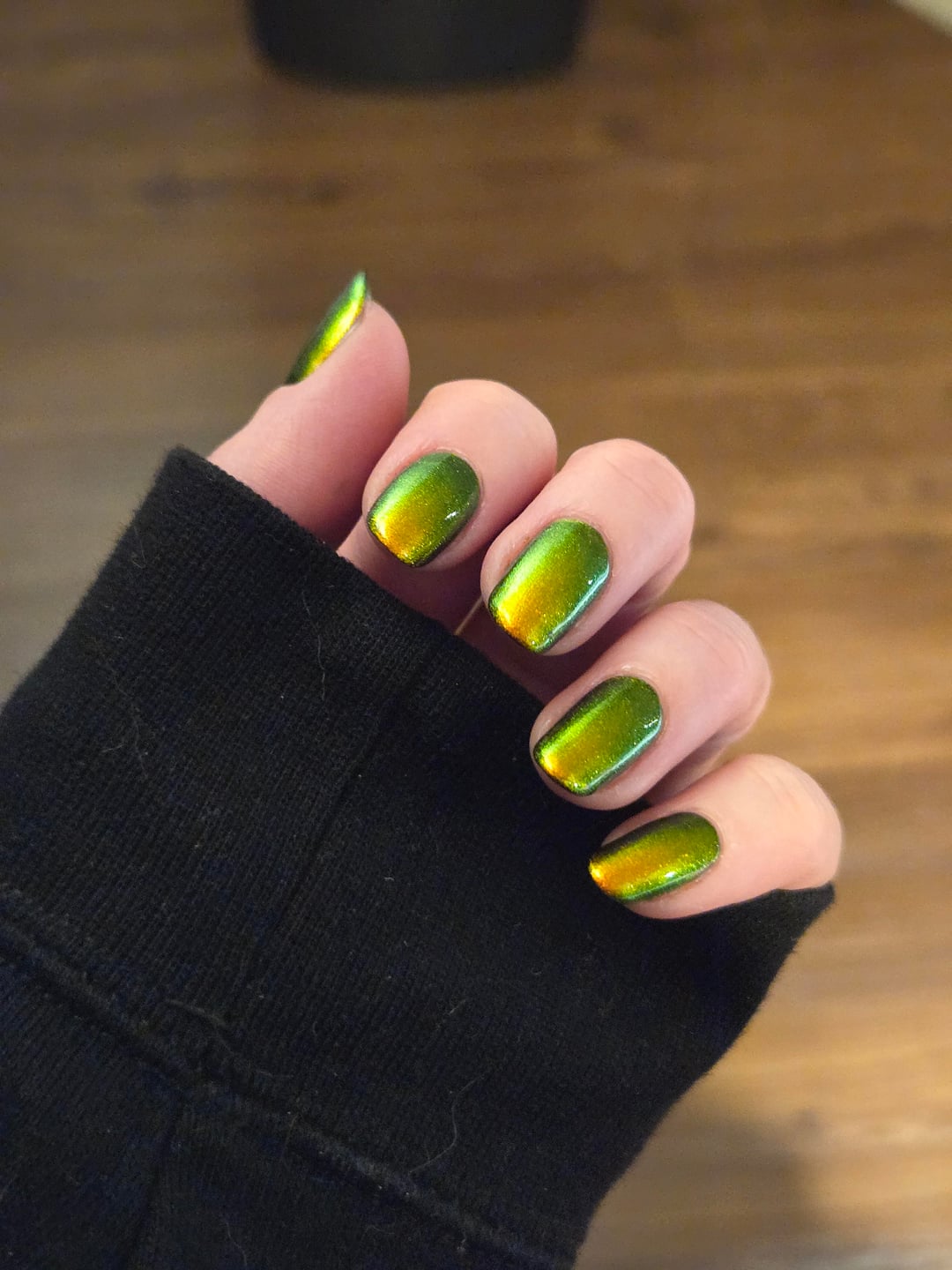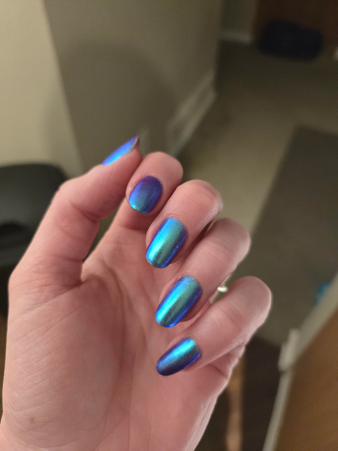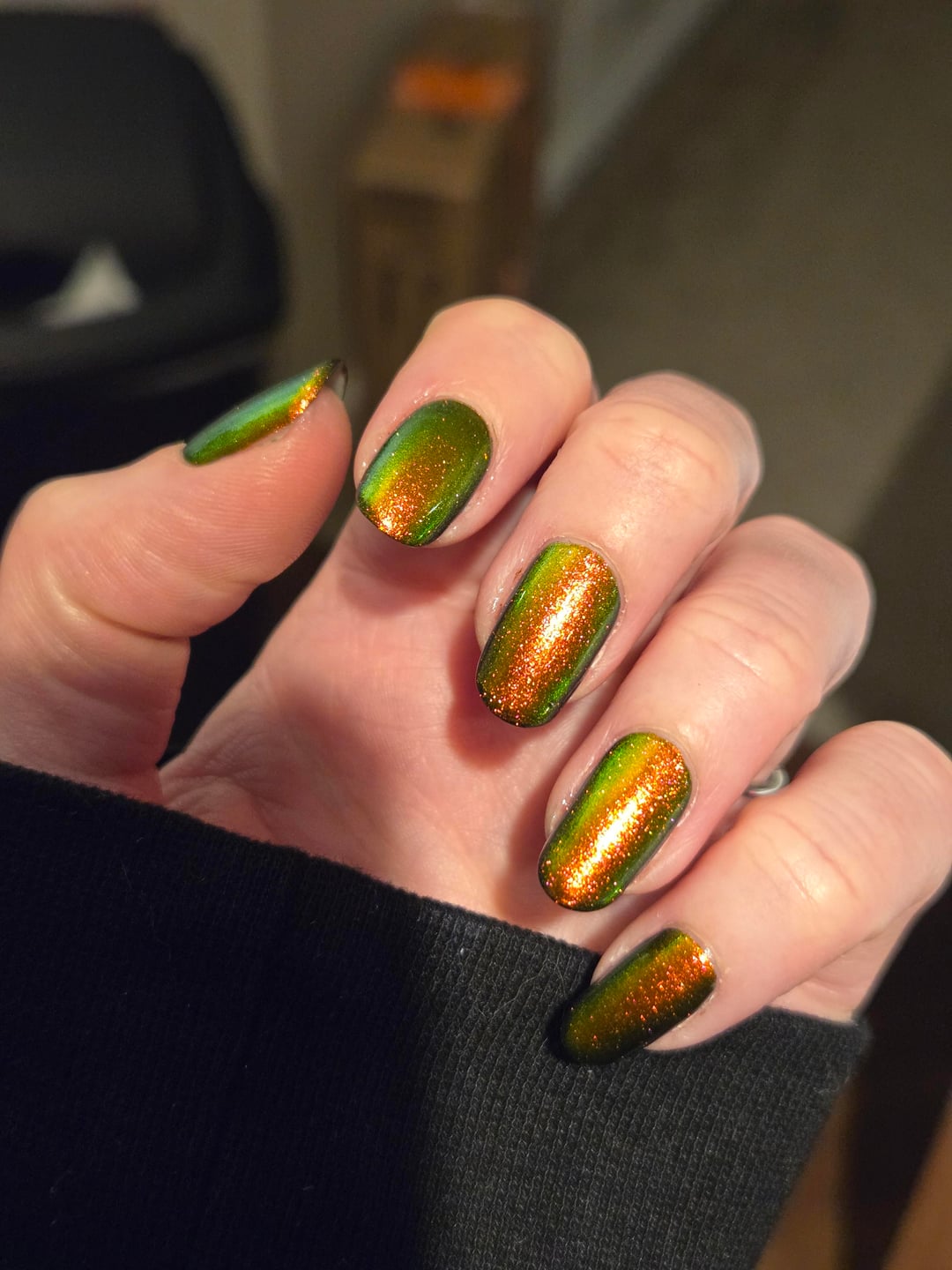 Big same, I got all of them too and they’re gorgeous. Seasons Change has got to be the shiftiest polish I own, from copper to gold to emerald green! And the BLUE shift in emotional support shiny! All four of them are stunning.