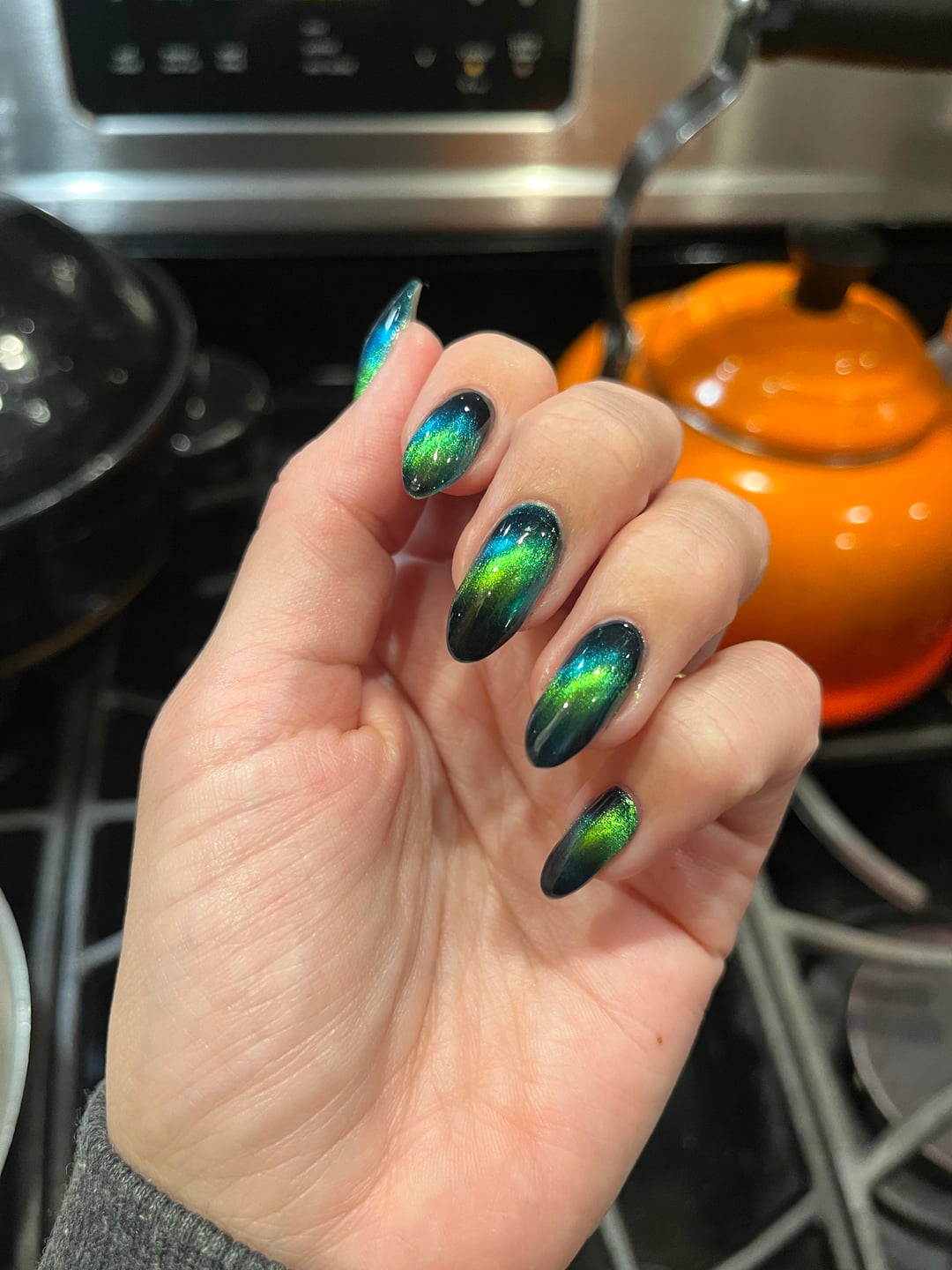 Monicure on December 14, 2025 2:00 am Cirque-mood ring Base is my structured gel overlay method then polish then Essie top coat to finish