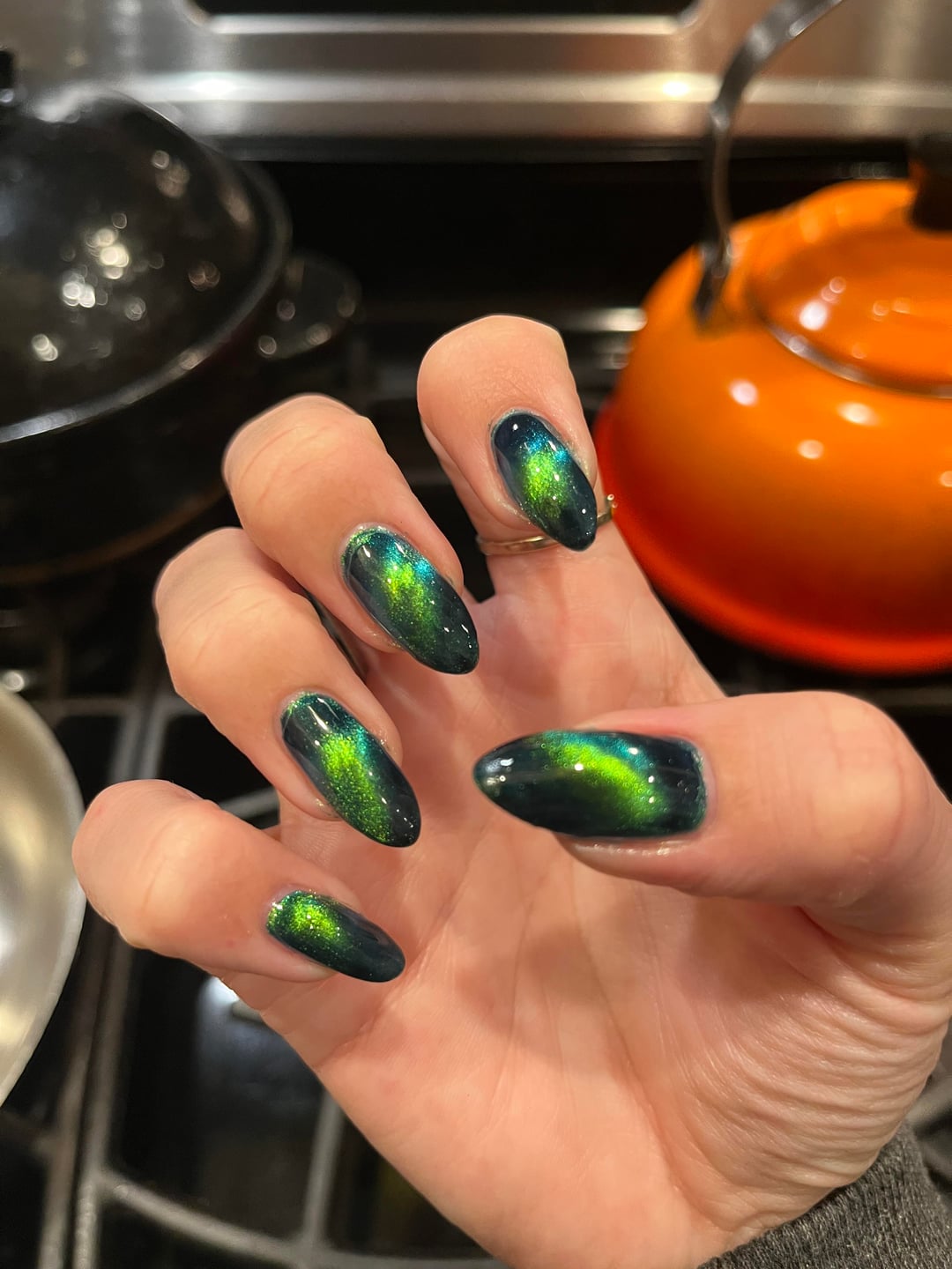 Loving the shift on this one. The blue shift shows up more in photos which is ironic but I catch it at certain angles in real life too so I’ll take it by Monicure