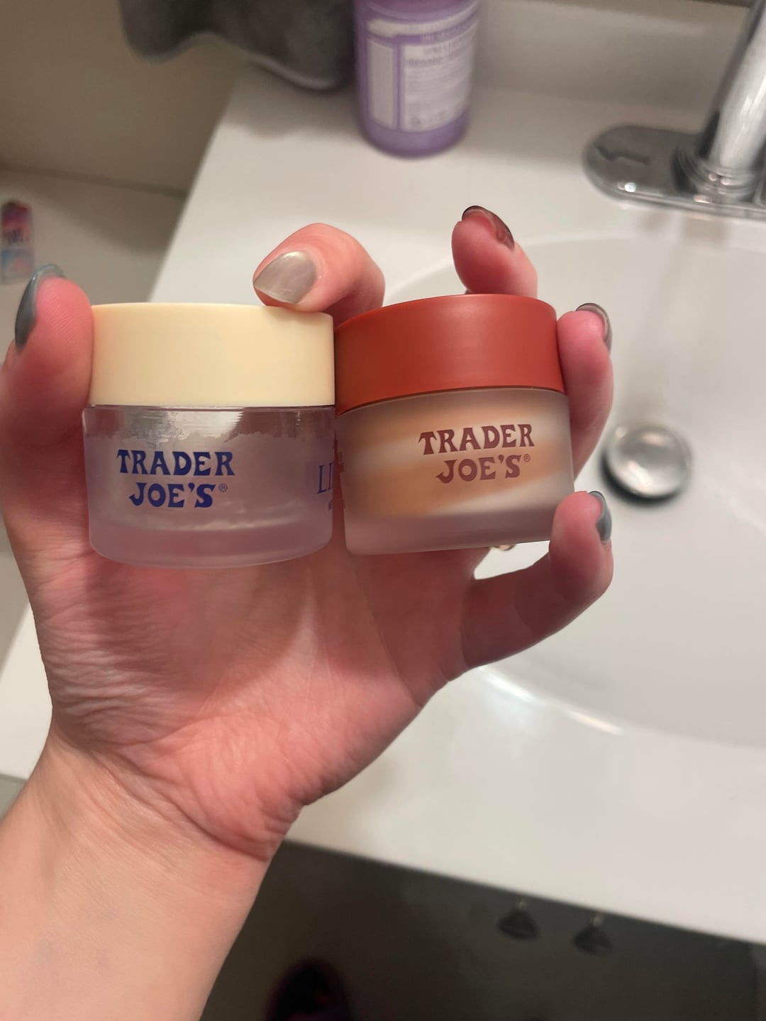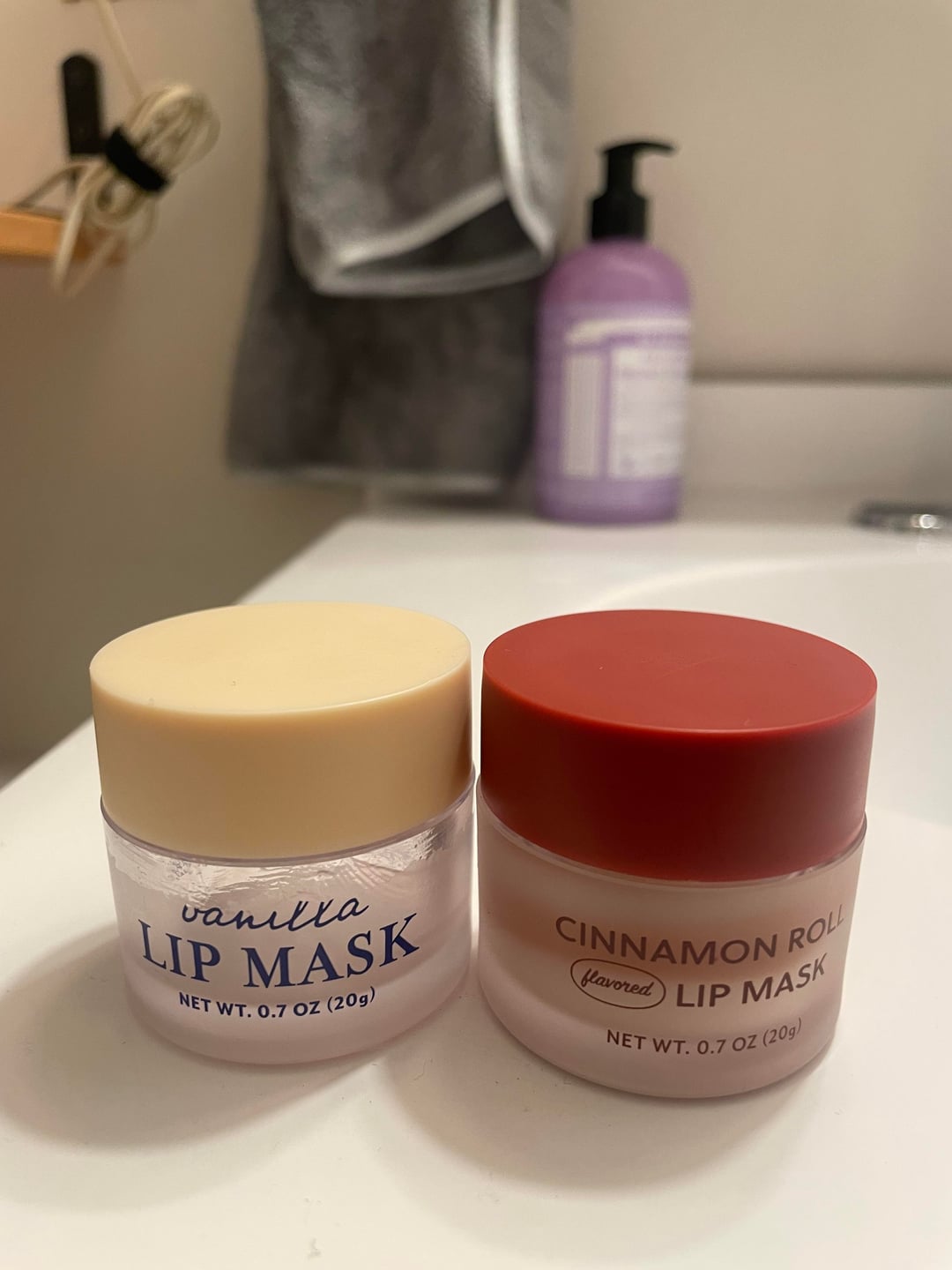Trader Joe’s Lip mask in Vanilla panned and replaced with Trader Joe’s lip mask in cinnamon roll. I think I like the vanilla one a little better just cause I’m such a big vanilla fan, but the cinnamon roll is also great and has the cute swirl