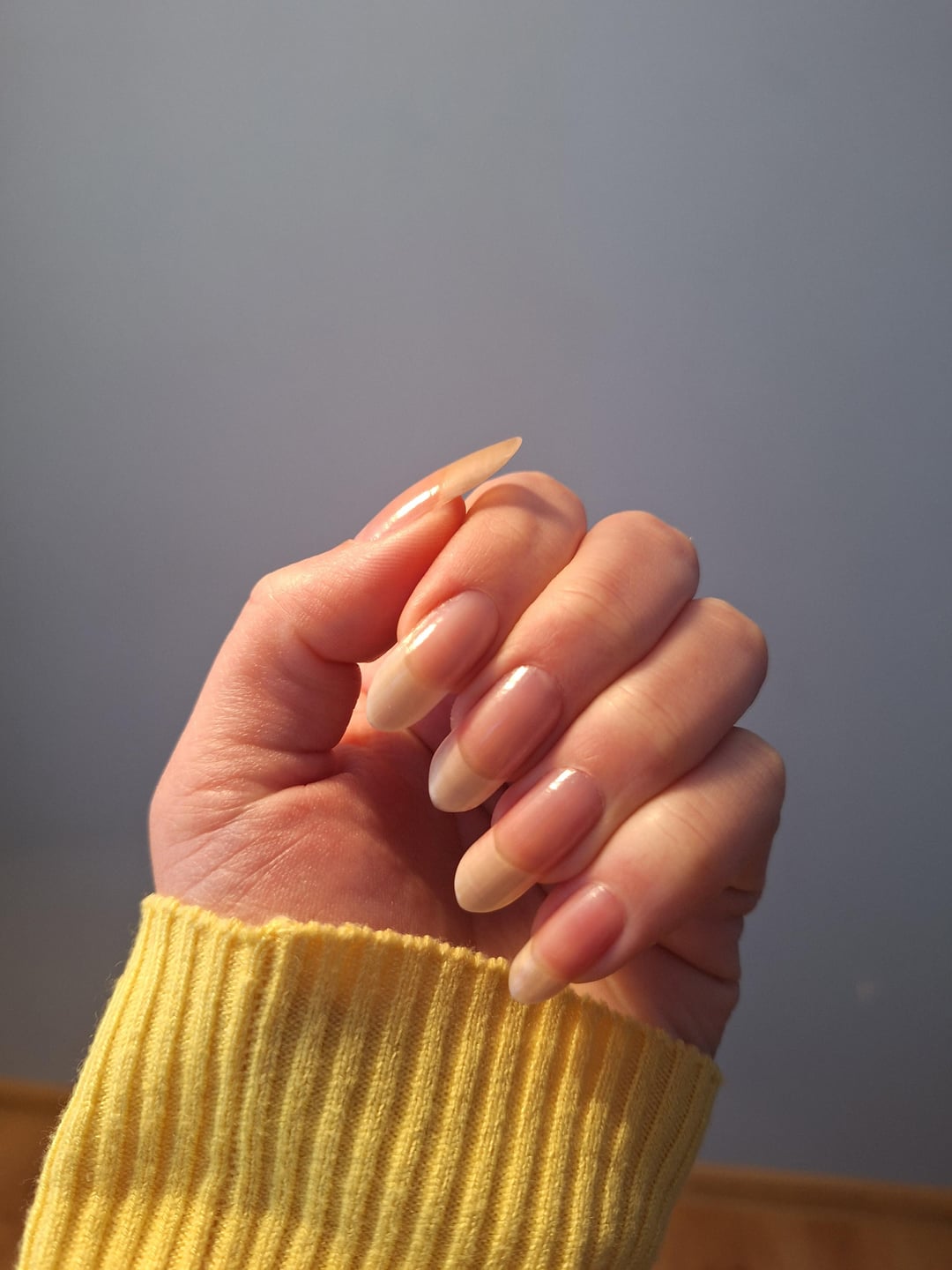 I had splitting on the same two nails, they are the ones most people use as tools. Try to avoid using your nails as tools as much as possible — it’s super annoying but necessary if you want to maintain this natural length in the future.