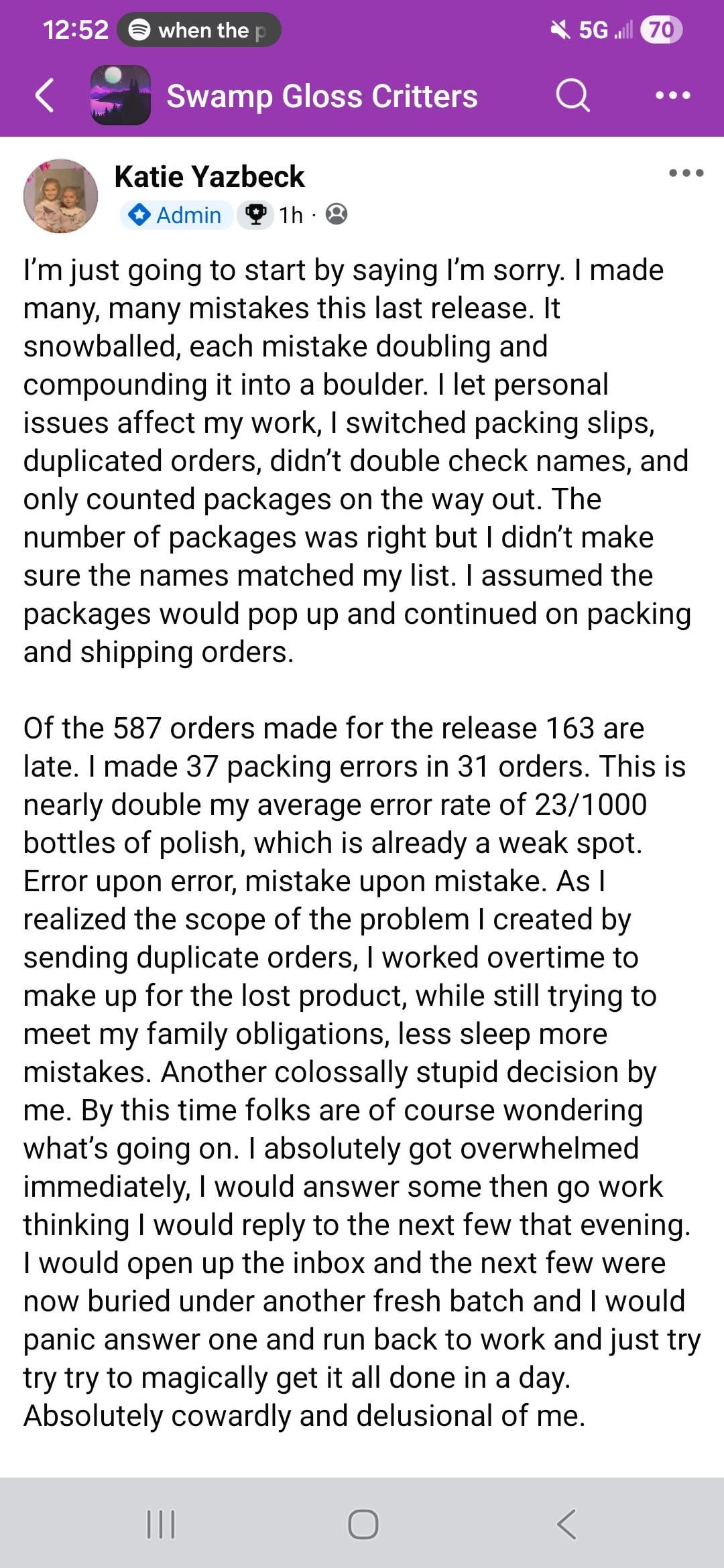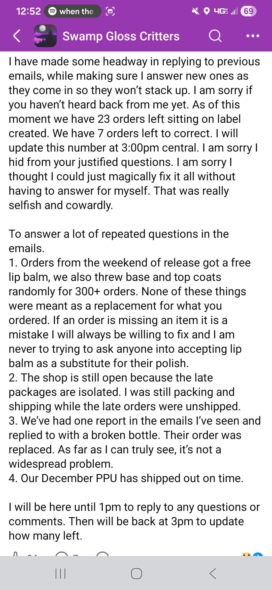 I wasn’t aware of anything going on because I’ve never ordered Swamp Gloss – but reading this, I feel so bad for her.
