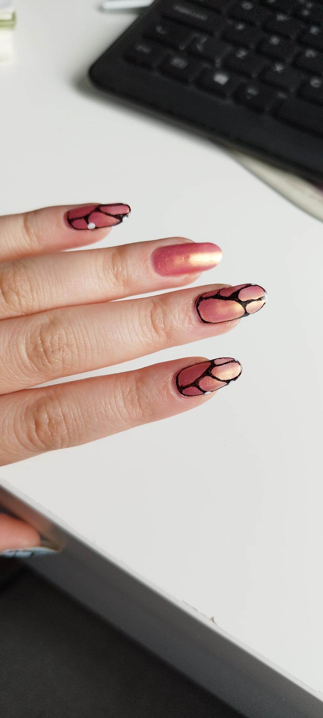 Was itching to paint some nails but I loved my current colour too much.. so I tried out some nail art again!