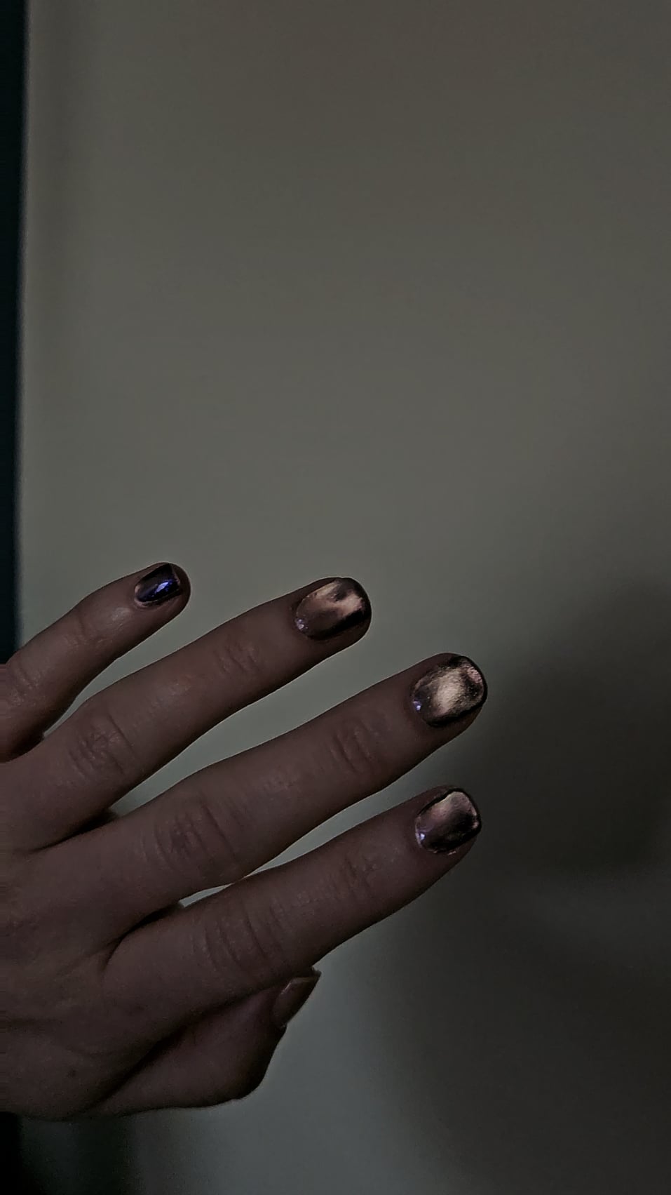 Hoping someone can help because I've lost my mind, about 1/4 of a bottle of kbshimmer "feelin groovy" and like 1/3 of a bottle of the amazing haunted polish "by the moonlight". I've tried thick layers. I've tried thin layers. I've tried adding polish thinner. I've used Essie's Gel Couture top coat – which has never been an issue wth magnetics before. I've tried Londontown's high gloss top coat. I've tried up to three layers of Ridge filler below the initial coat. I'm using a horseshoe magnet and lazy Susan- the same set up I've used many times before, and every single time it turns out like this – a streaky, inconsistent appearance with crazy shrinkage maybe 8 hours later. What in the ever-loving heck am I doing wrong? It looks like a nightmare before the top coat half the time. I've gotten other polishes to do beautiful glass beads and I know this one is more than capable of it because it's why it's been so popular! So why am I inept suddenly?